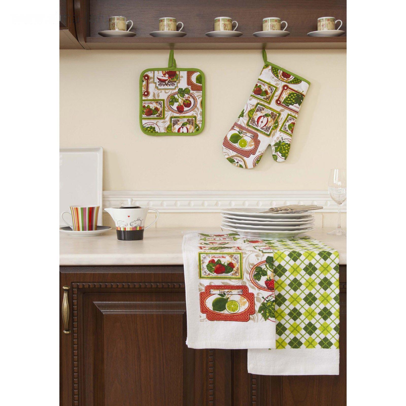 Набор кухонный «Фрукты»: прихватки - 2 шт, полотенце 38 × 64 см - 2 шт