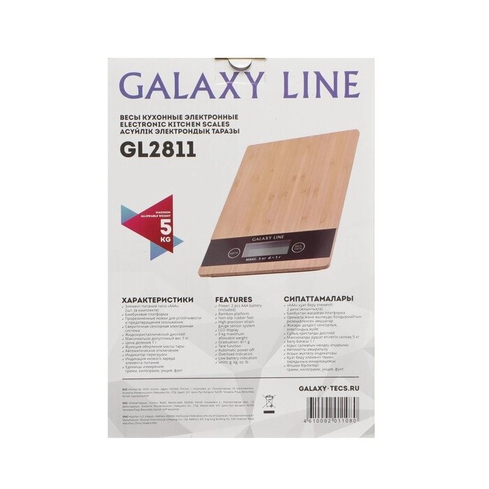 Весы кухонные Galaxy GL 2811, электронные, до 5 кг, бежевые