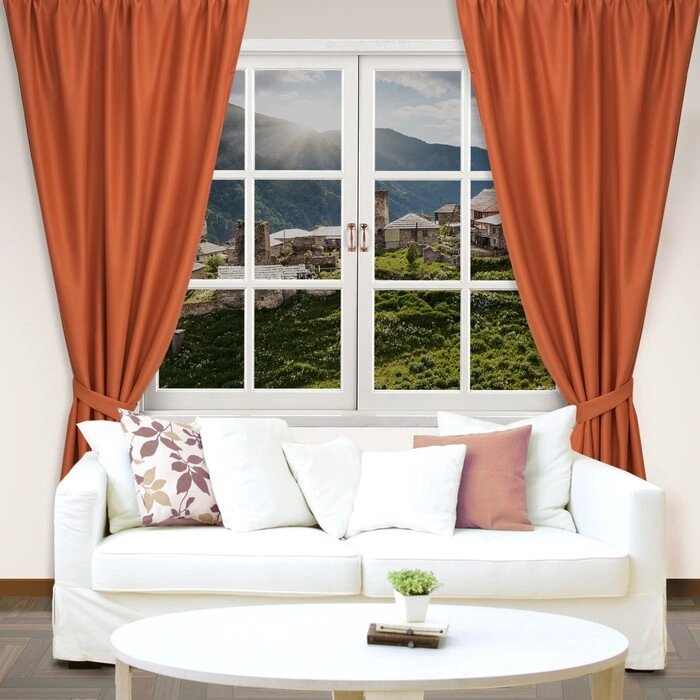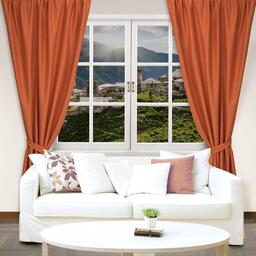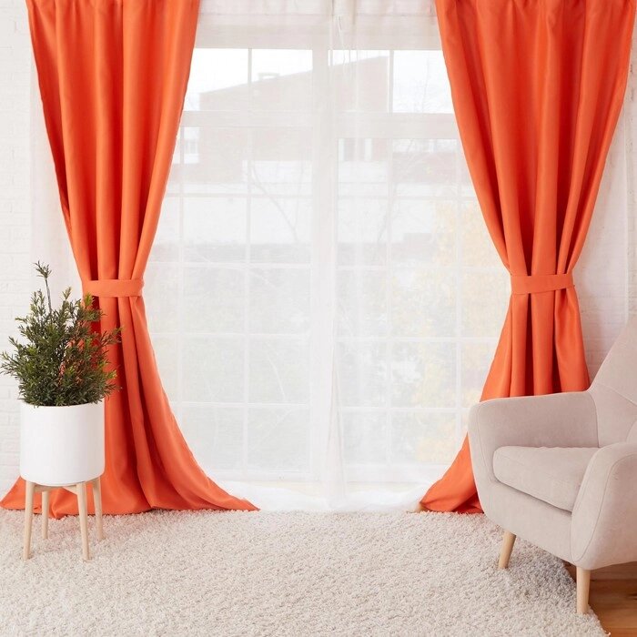 Штора портьерная "Этель" 250х265, цв. оранжевый, блэкаут,100% п/э