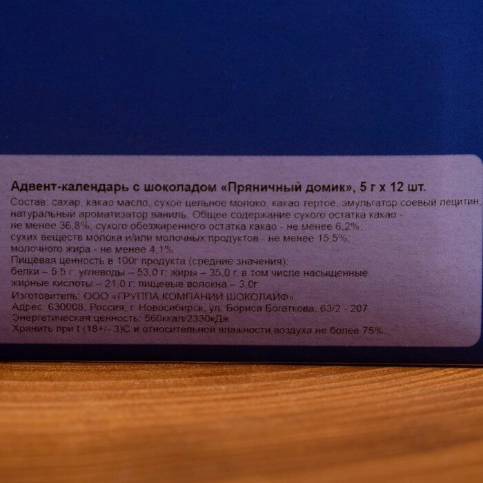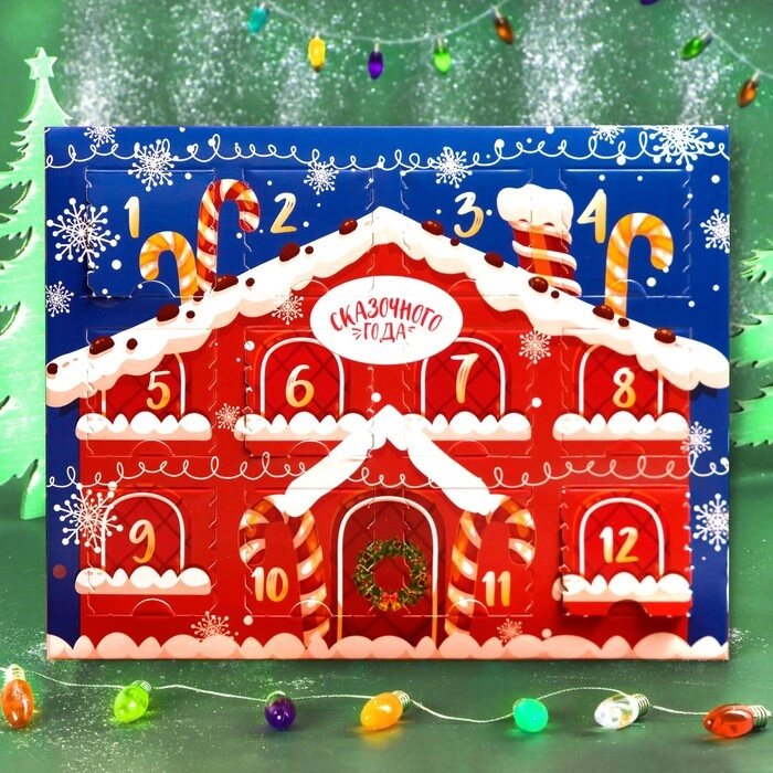 Адвент календарь с шоколадом "Пряничный домик", 12 х 5 г