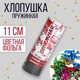 Хлопушка пружинная "Денег", 11 см (конфетти + серпантин)