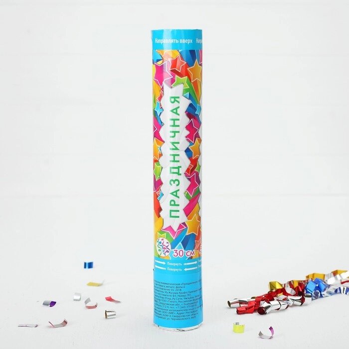 Хлопушка пневматическая "Праздничная", фольга-серпантин, 30 см