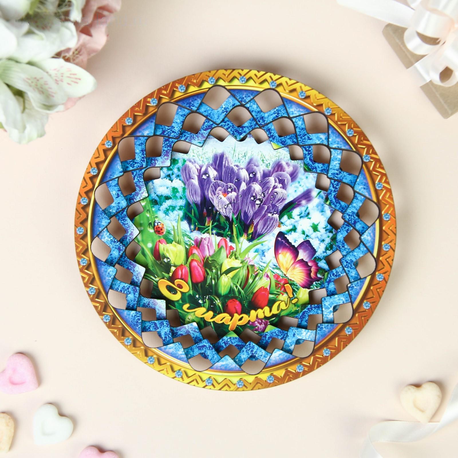 Тарелка конфетница "8 Марта, бабочка", 19,5х19,5 см