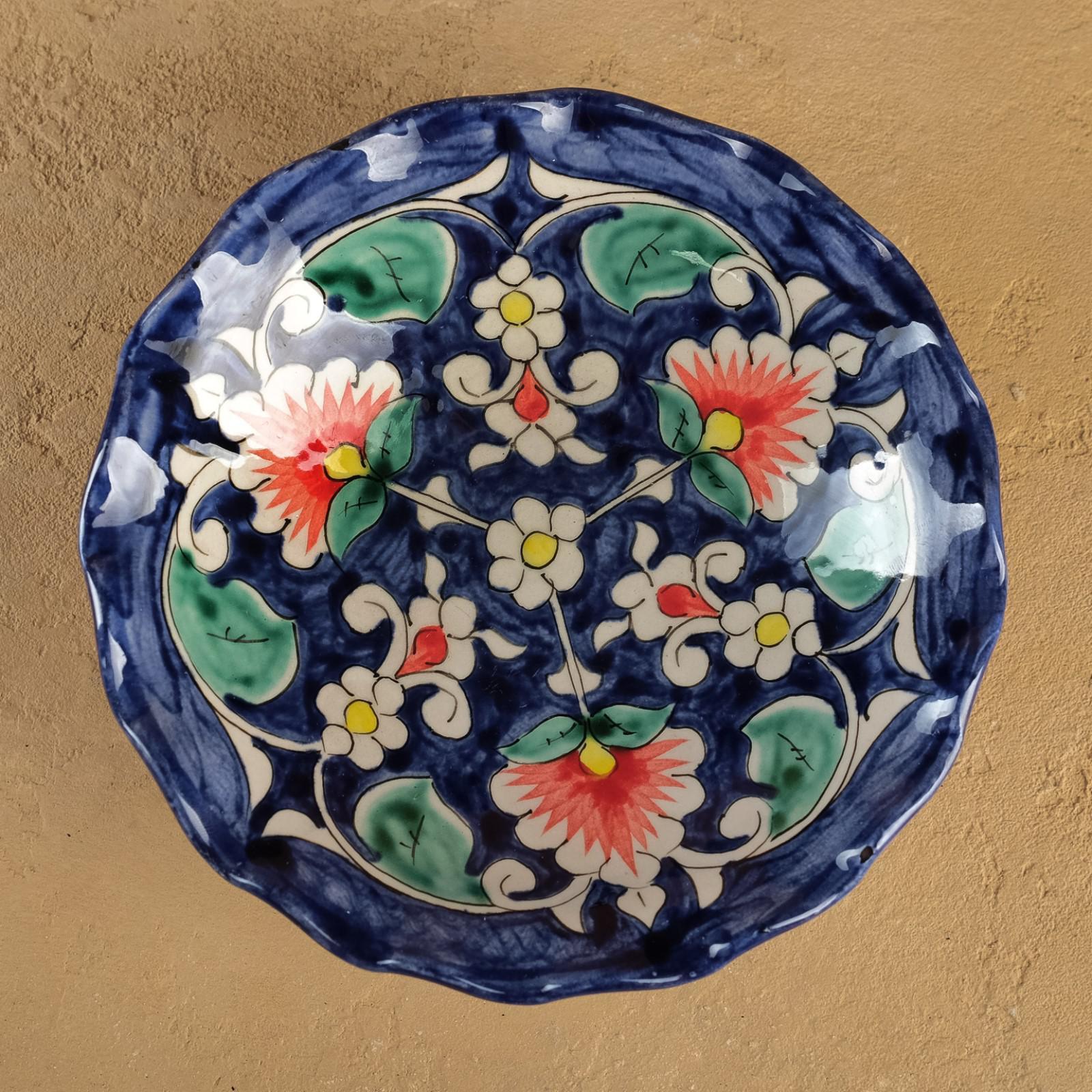 Конфетница Риштанская Керамика "Цветы", 16 см, синяя