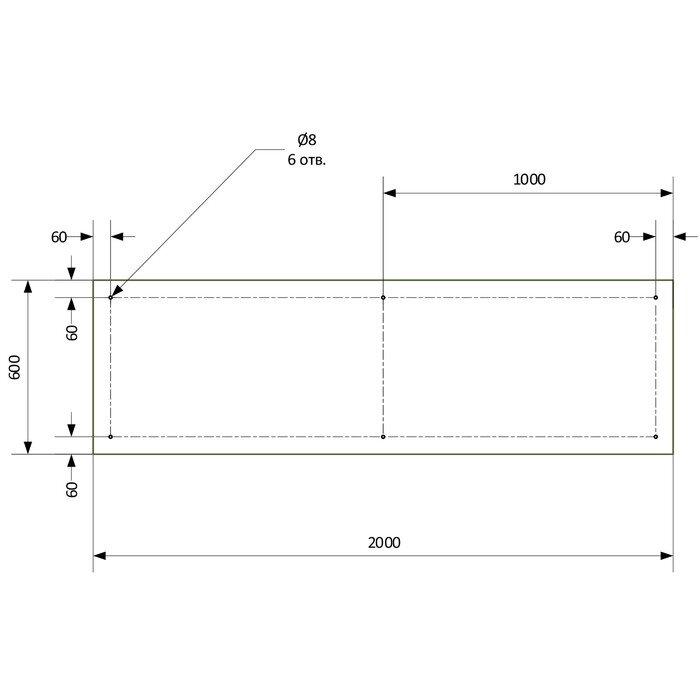 - Габариты (глубина х ширина х высота) 200 см × 0,4 см × 60 см