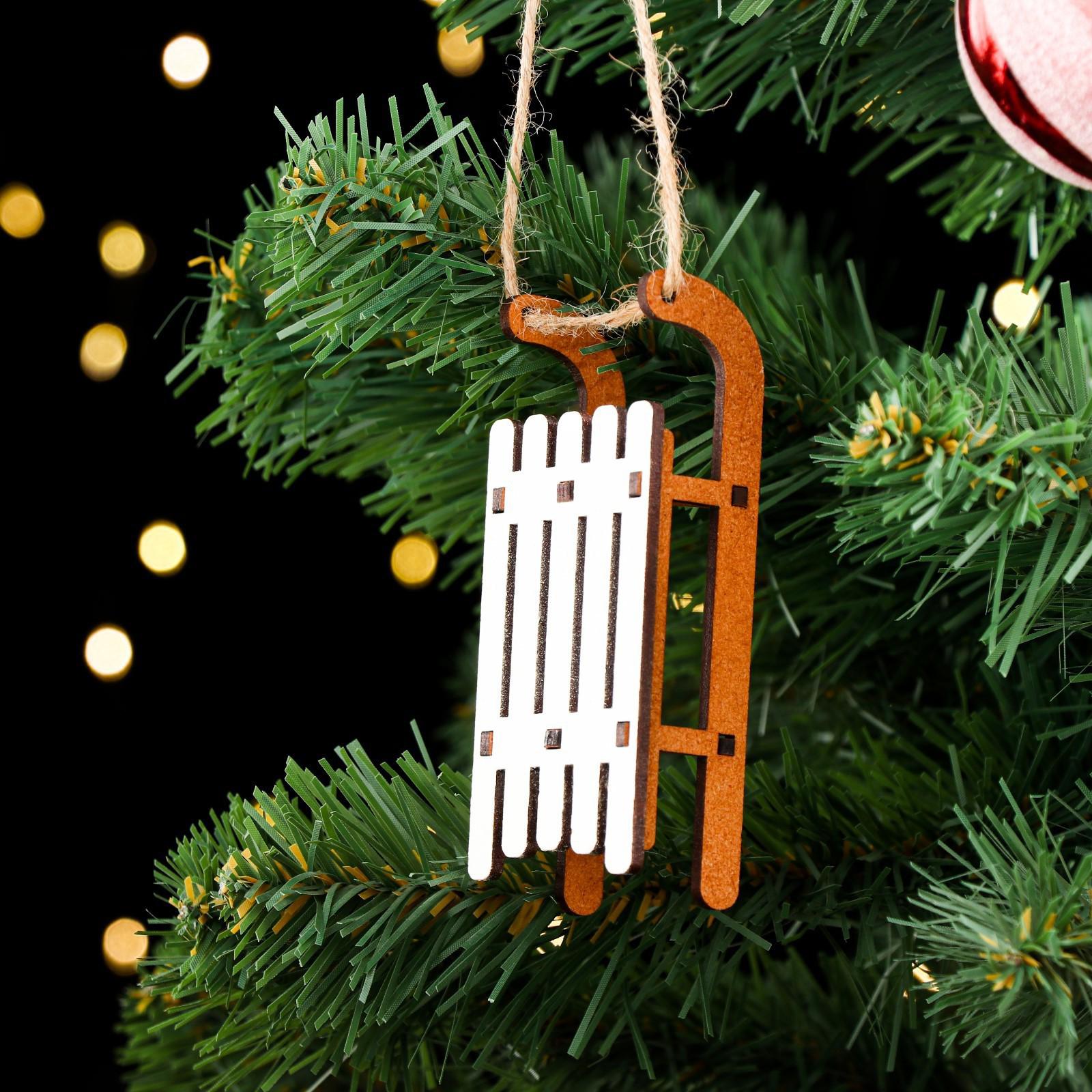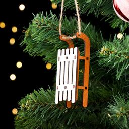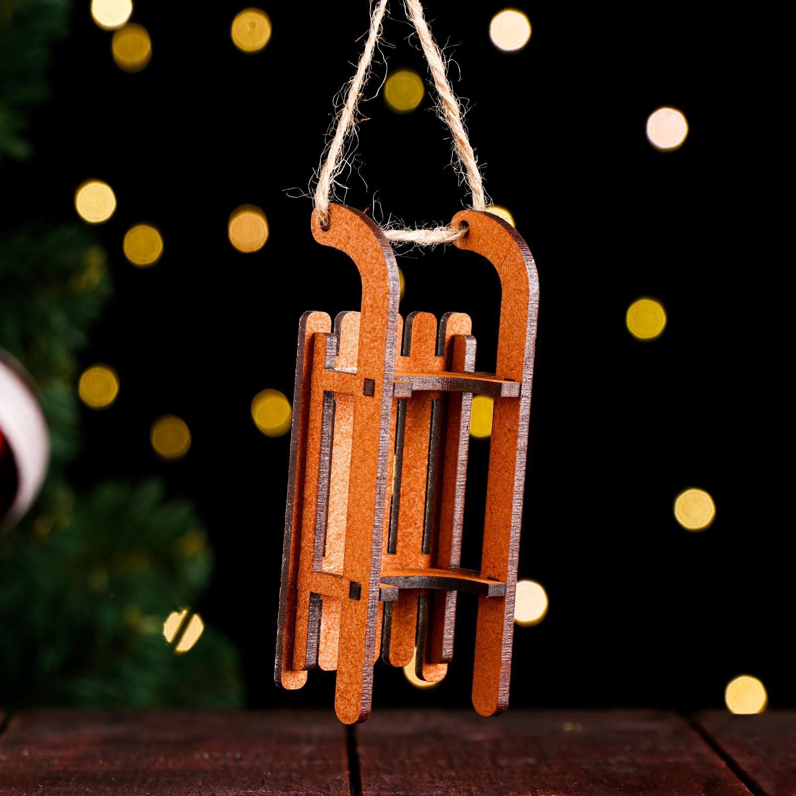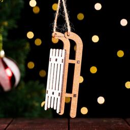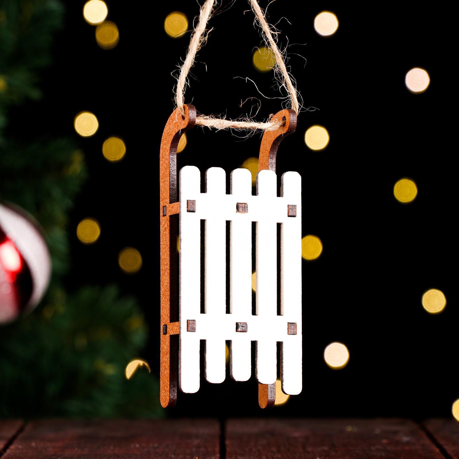 Ёлочное украшение "Салазки", белый, 10х4,5х2,5 см, МДФ