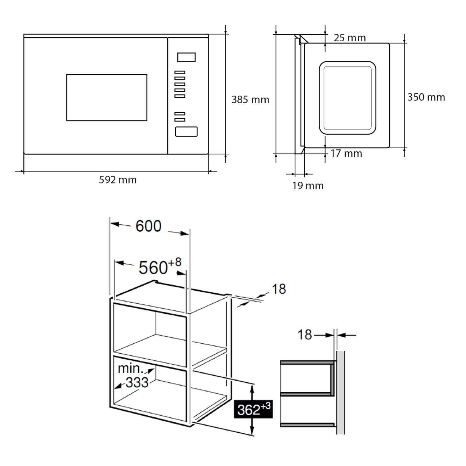 Встраиваемая микроволновая печь MAUNFELD MBMO.20.8GB, 800 Вт, 20 л, 8 режимов, чёрная