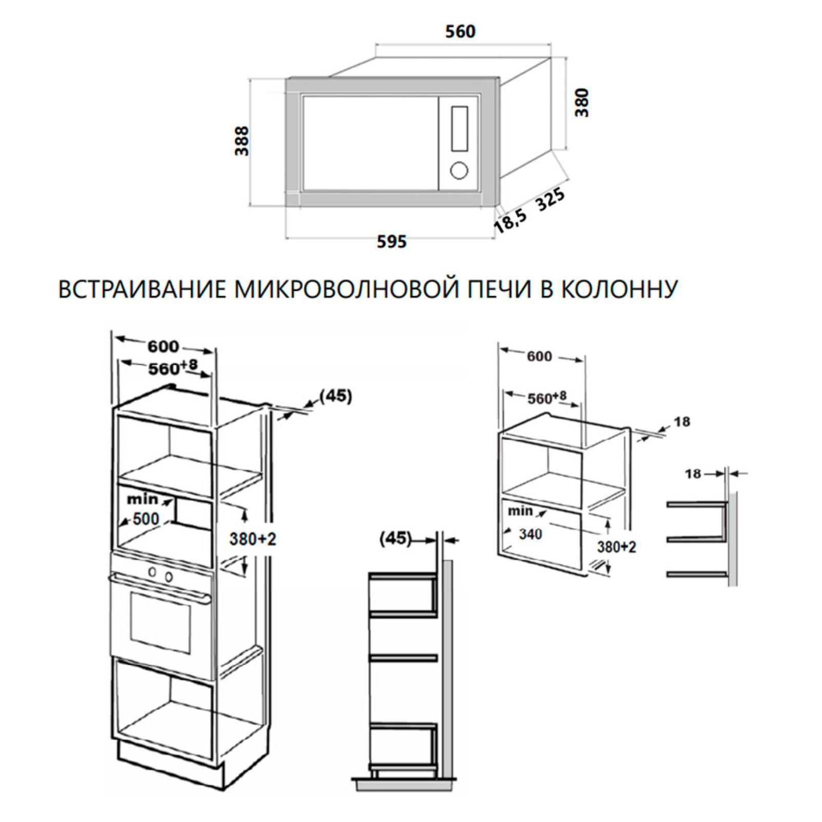 Встраиваемая микроволновая печь MAUNFELD MBMO.20.2PGW, 800 Вт, 20 л, 9 режимов, белая
