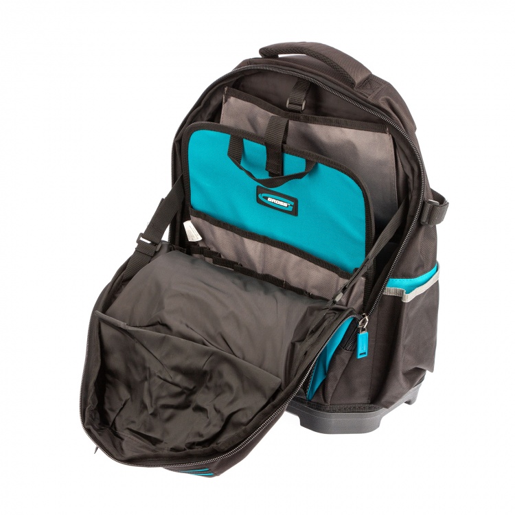 Рюкзак для инструмента предназначен для переноски и хранения ручного инструмента.Жесткое пластиковое дно устойчиво к внешним ударным воздействиям.Широкие лямки с вставками из мягкого материала удобны при длительном использовании.Эргономичная форма задней стенки рюкзака обеспечивает дополнительный комфорт при ходьбе.Рюкзак оснащен двумя широкими внешними карманами, карманом-сеткой, удобной рукояткой для переноса, петлей-подвесом, переносным органайзером с 70 карманами.Возможность многочисленных настроек обеспечивают удобство в работе.