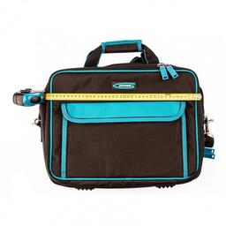 Сумка для инструмента предназначена для переноса и хранения ручного инструмента, документов формата А4, а также ноутбука с диагональю экрана до 15.Множество удобных карманов и прижимных резинок позволяют быстро устанавливать и фиксировать инструменты в сумке.Сумка оснащена удобными рукоятками для переноски, а также наплечным ремнем.Длина сумки 410 мм.