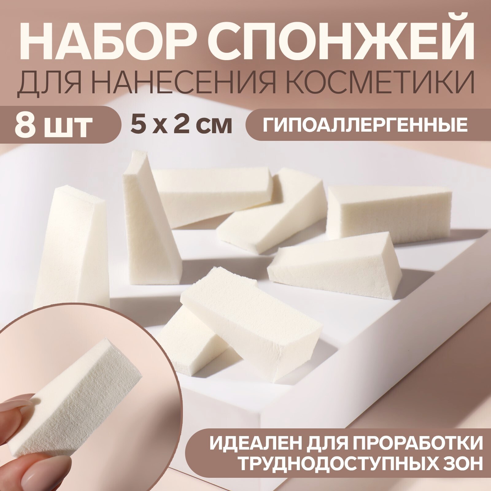 Набор спонжей для нанесения косметики, 5 × 2 см, 8 шт, цвет белый