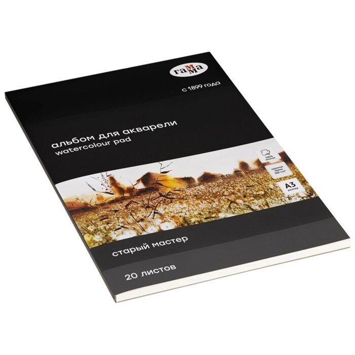 Альбом для Акварели А3 Гамма "Старый мастер", 20 листов, на склейке, крупное зерно