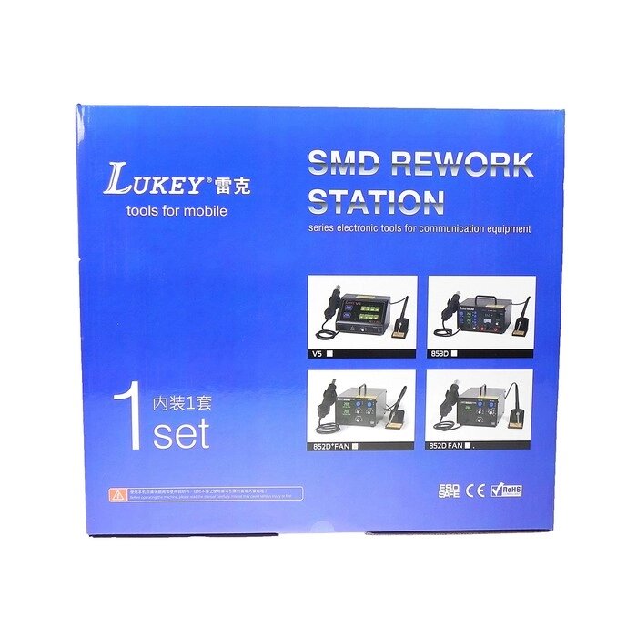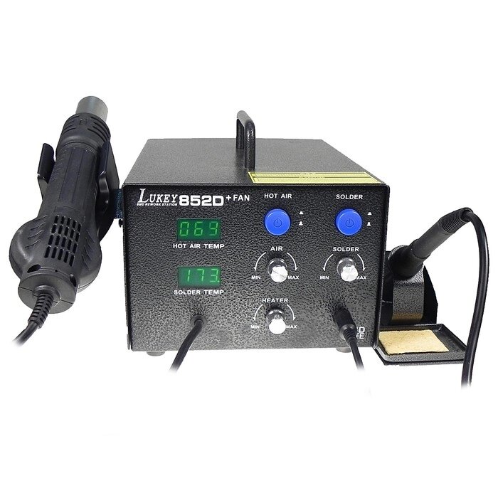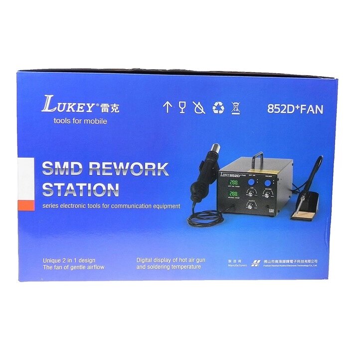 Паяльная станция LUKEY 852D+FAN, вентиляторная, цифровая, 750 Вт, 100-480°С, фен/паяльник