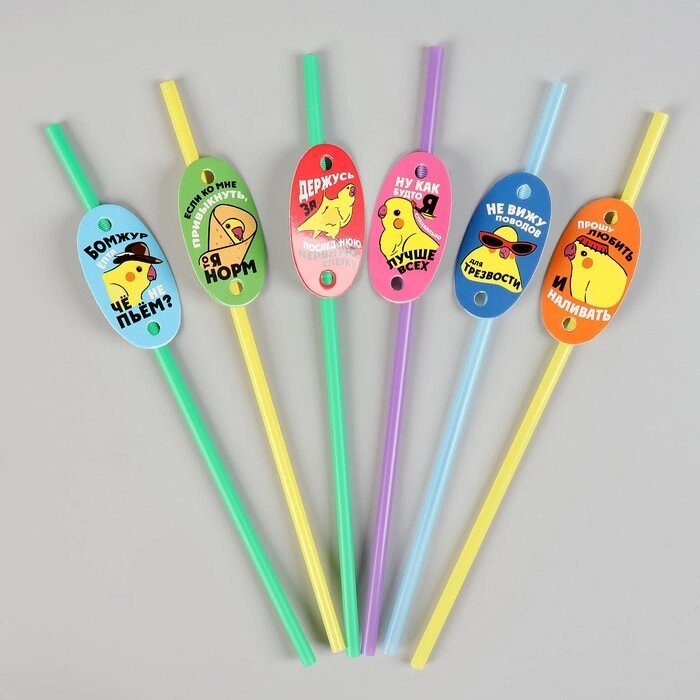 Трубочки для коктейлей "Попугаи", набор 6 штук
