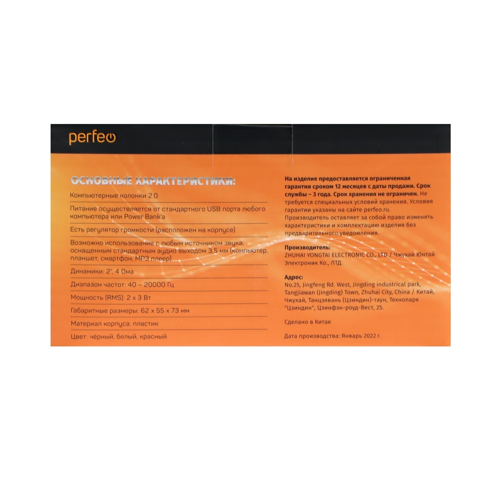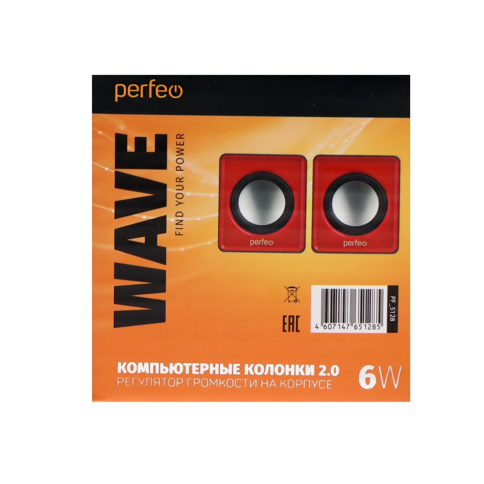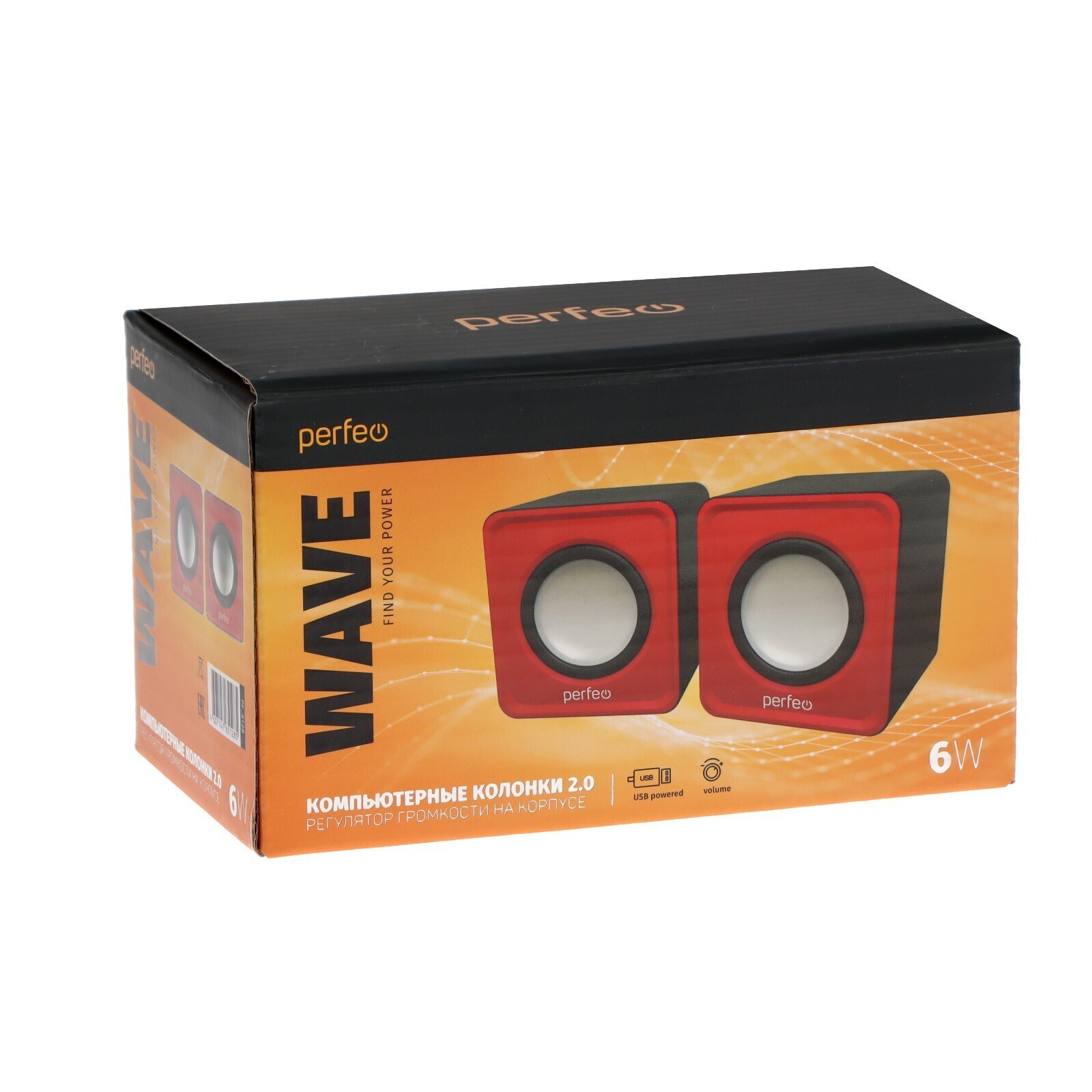 Компьютерные колонки 2.0 Perfeo "WAVE" , 2х3Вт, USB, красные