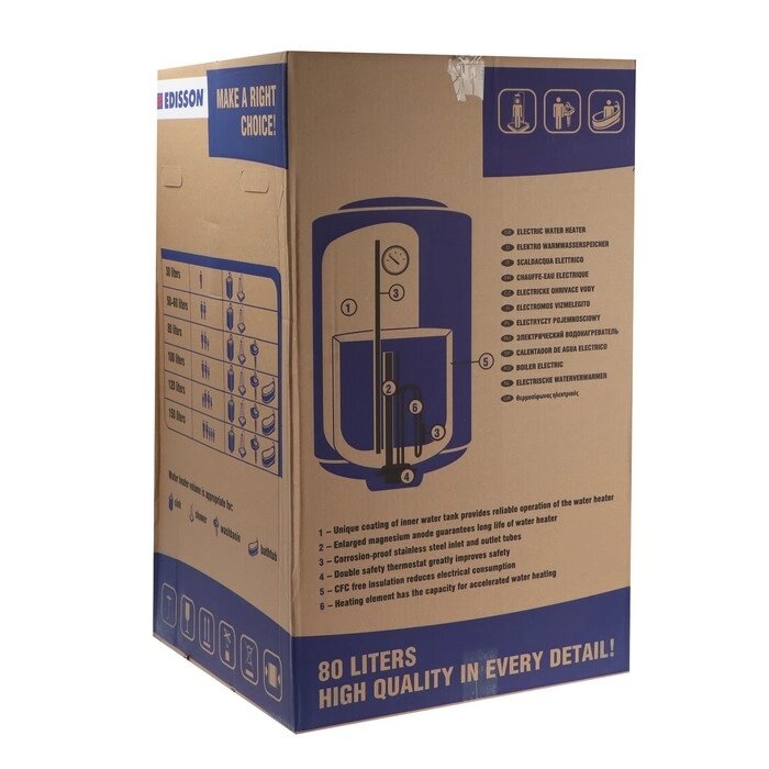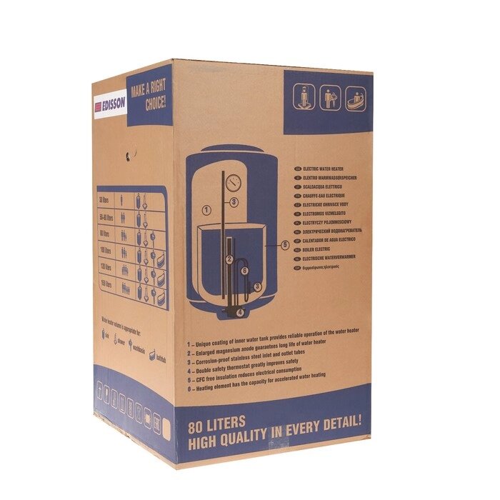 Водонагреватель EDISSON ER 80 V, накопительный, круглый, эмаль, 80 л, 1500 Вт