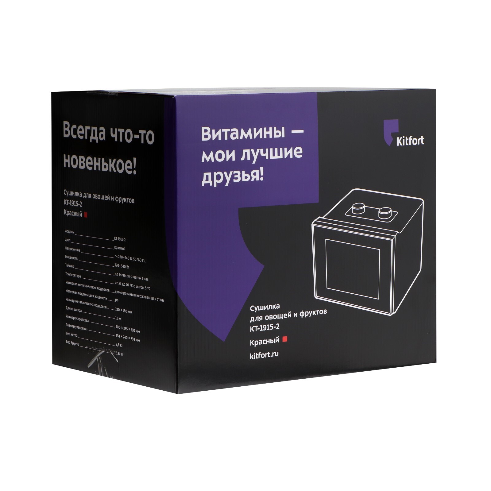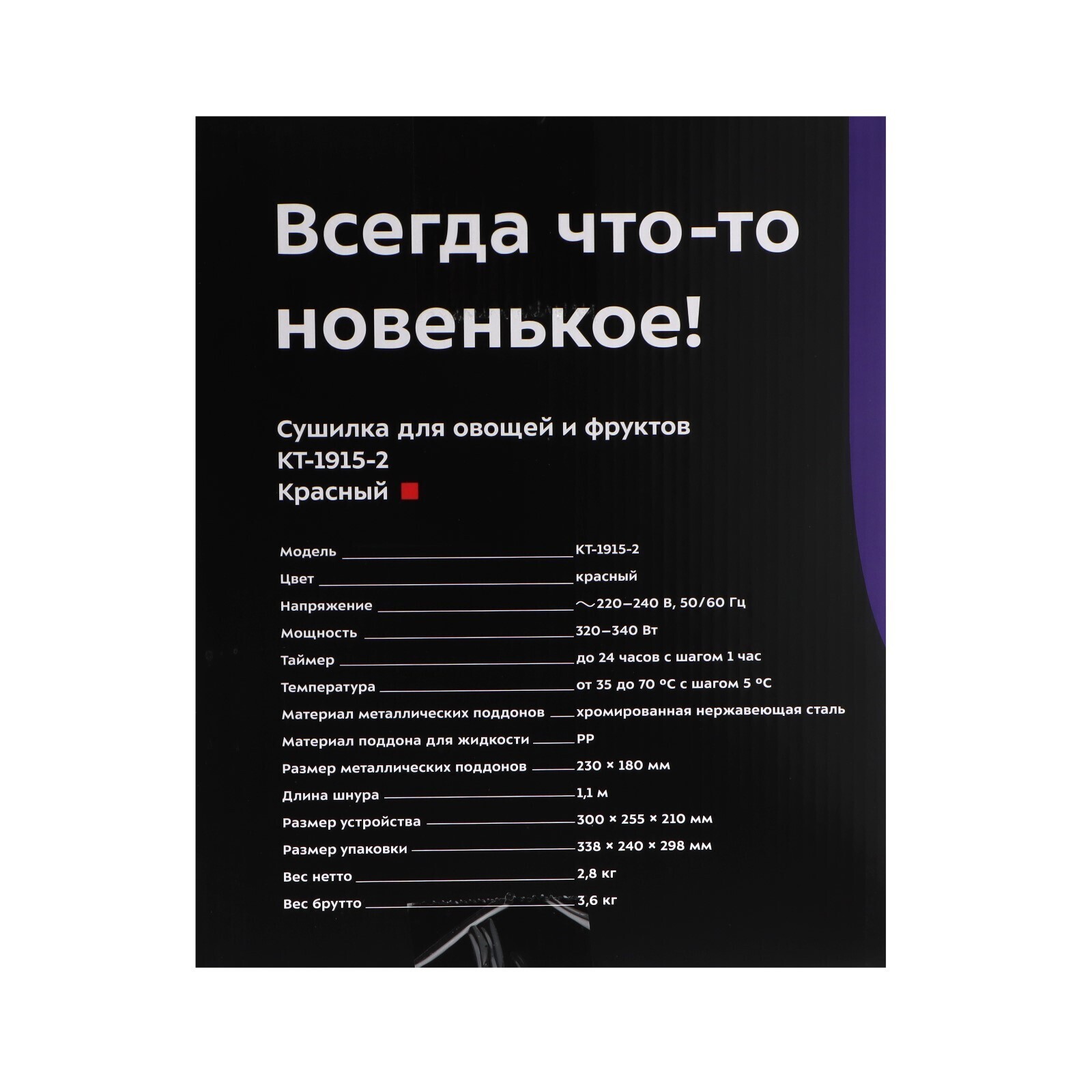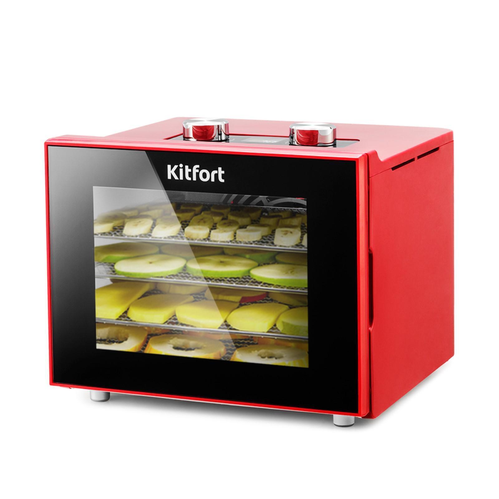 Сушилка для овощей и фруктов Kitfort КТ-1915-2, 340 Вт, 4 яруса, 230х180 мм, красная