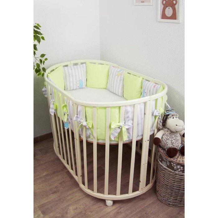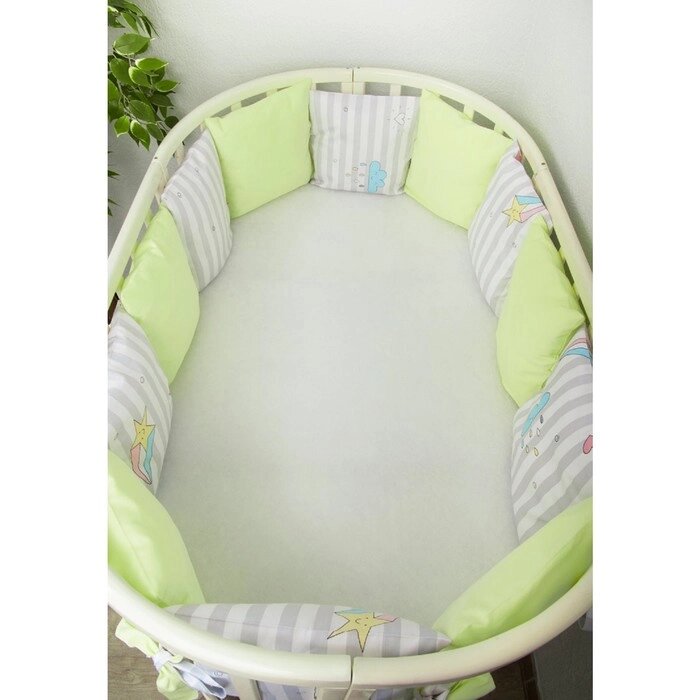 Борт в кроватку «Серебряная нить», 12 предметов, салатовый