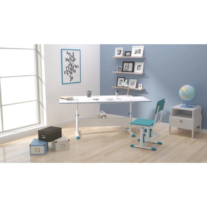 Растущая парта-трансформер Polini kids City D2, 120 55 см, цвет белый/синий