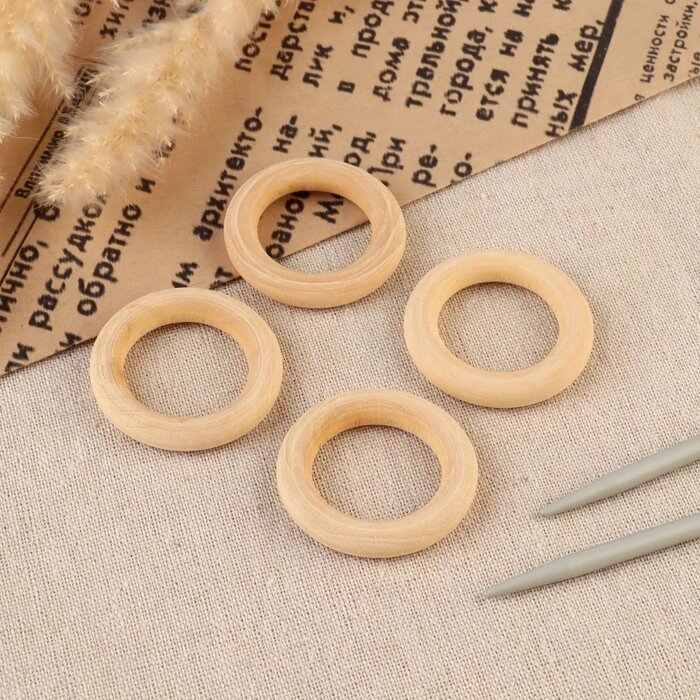 Набор колец для макраме, деревянные, d = 2,6/4 см, 4 шт