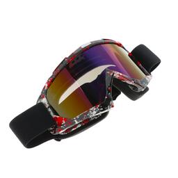 Очки-маска для езды на мототехнике, стекло сине-фиолетовый хамелеон, черно-красные, ОМ-25