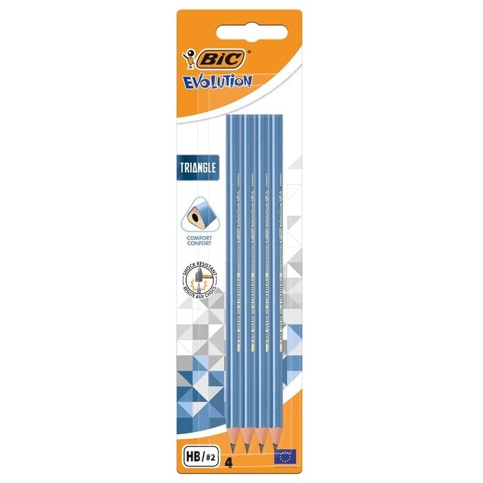 Набор карандашей чернографитных (простых) BIC Evolution Triangle, НВ, 4 штуки, заточенных, пластик, без ластика,