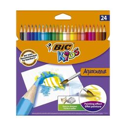 Карандаши акварельные 24 цвета, BIC Aquacouleur, детские, шестигранные, деревянные, премиум с кисточкой