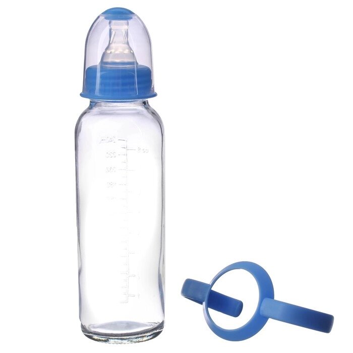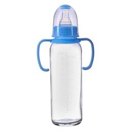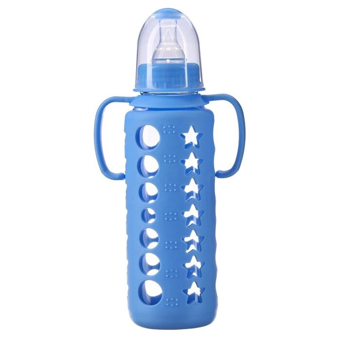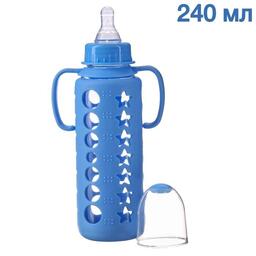 Бутылочка в силиконовом чехле, с ручками, стекло, 240 мл., цвет голубой