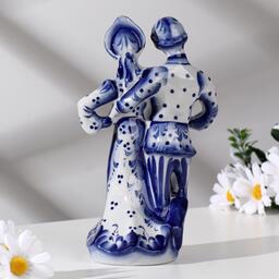 Собственный стиль Гжели — синие и голубые узоры, растительный орнамент и витиеватые украшения на белом фоне. В каждом предмете легко и непринуждённо варьируются букеты и гирлянды, вводятся геометрические пояски, похожие на вязаное кружево, изделия украшает декоративная лепнина, изображаются пейзажные сюжеты.