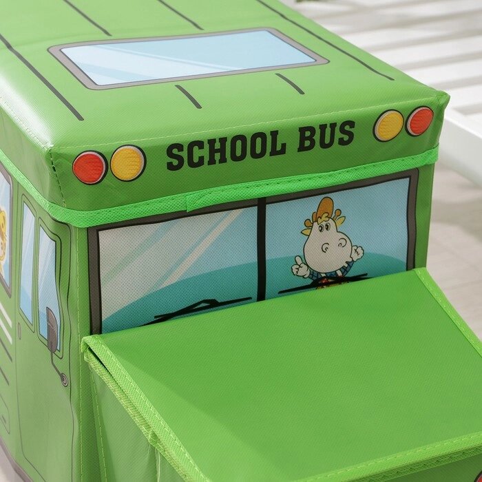 Короб для хранения с крышкой «Школьный автобус», 552632 см, 2 отделения, цвет зелёный