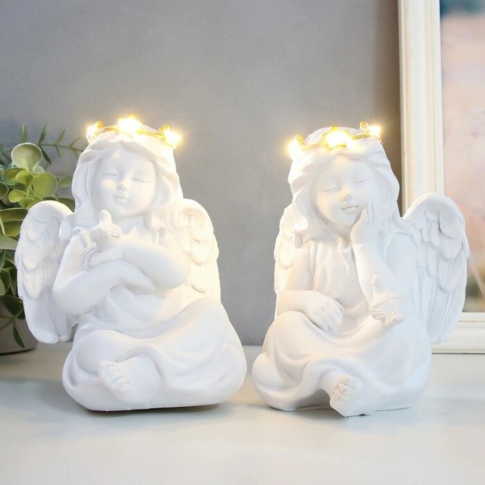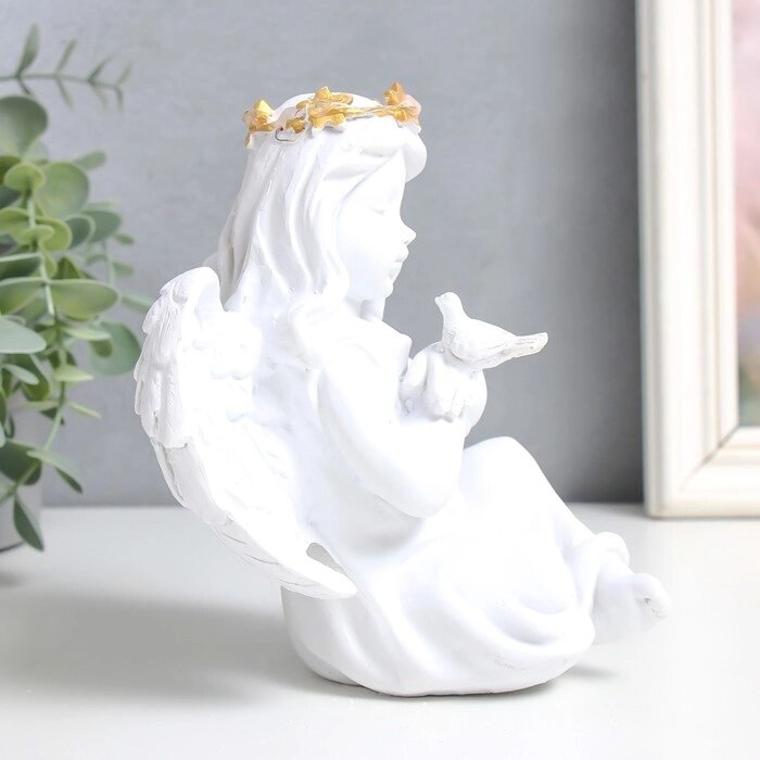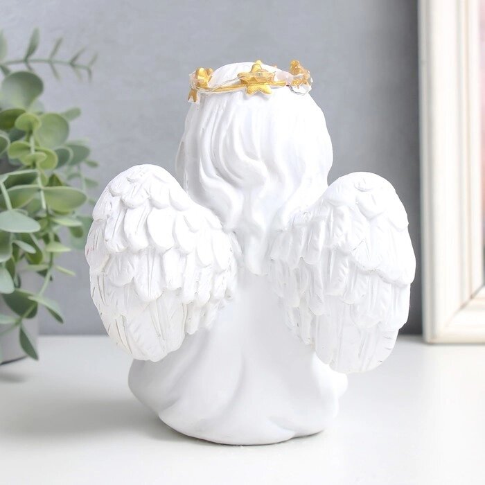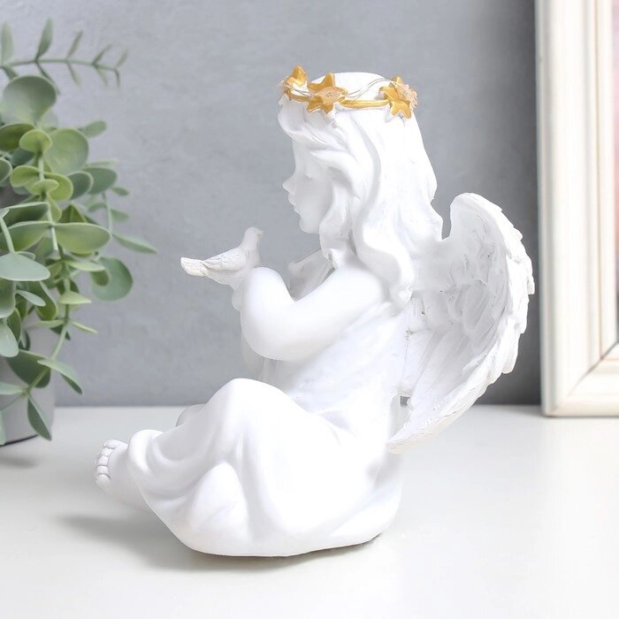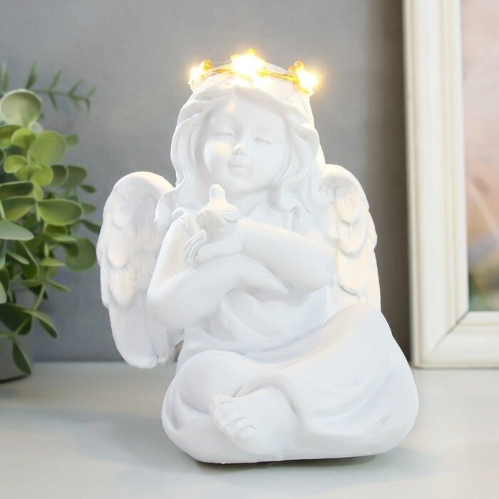 Сувенир полистоун свет "Ангел со звёздным венком и голубем" белый МИКС 12х11,5х15 см