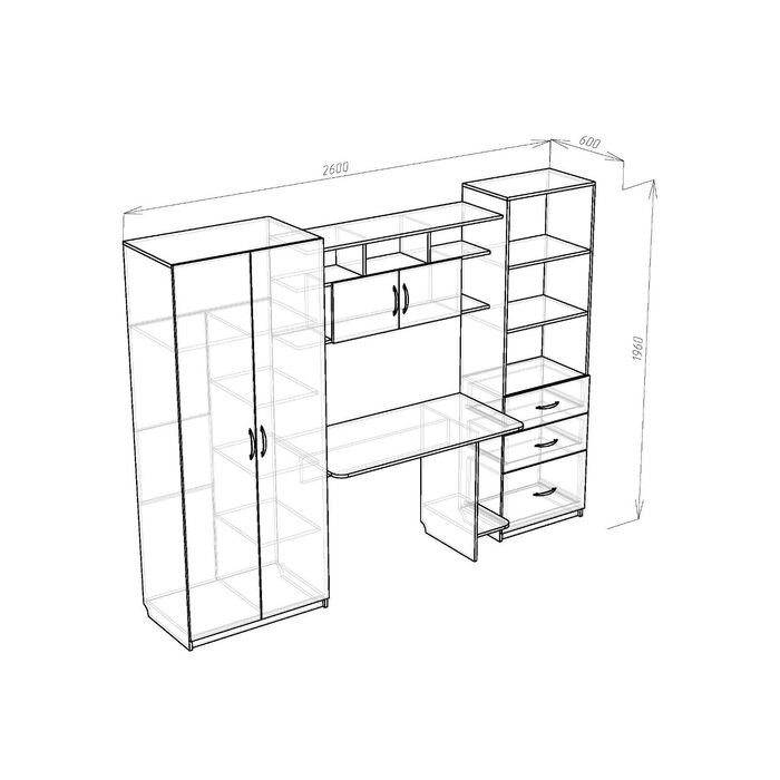 • Габариты (глубина х ширина х высота) 260 см × 60 см × 196 см