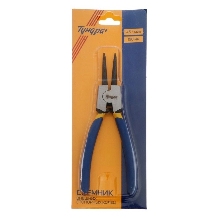 Съемник внешних стопорных колец ТУНДРА, прямые губки на разжим, 150 мм
