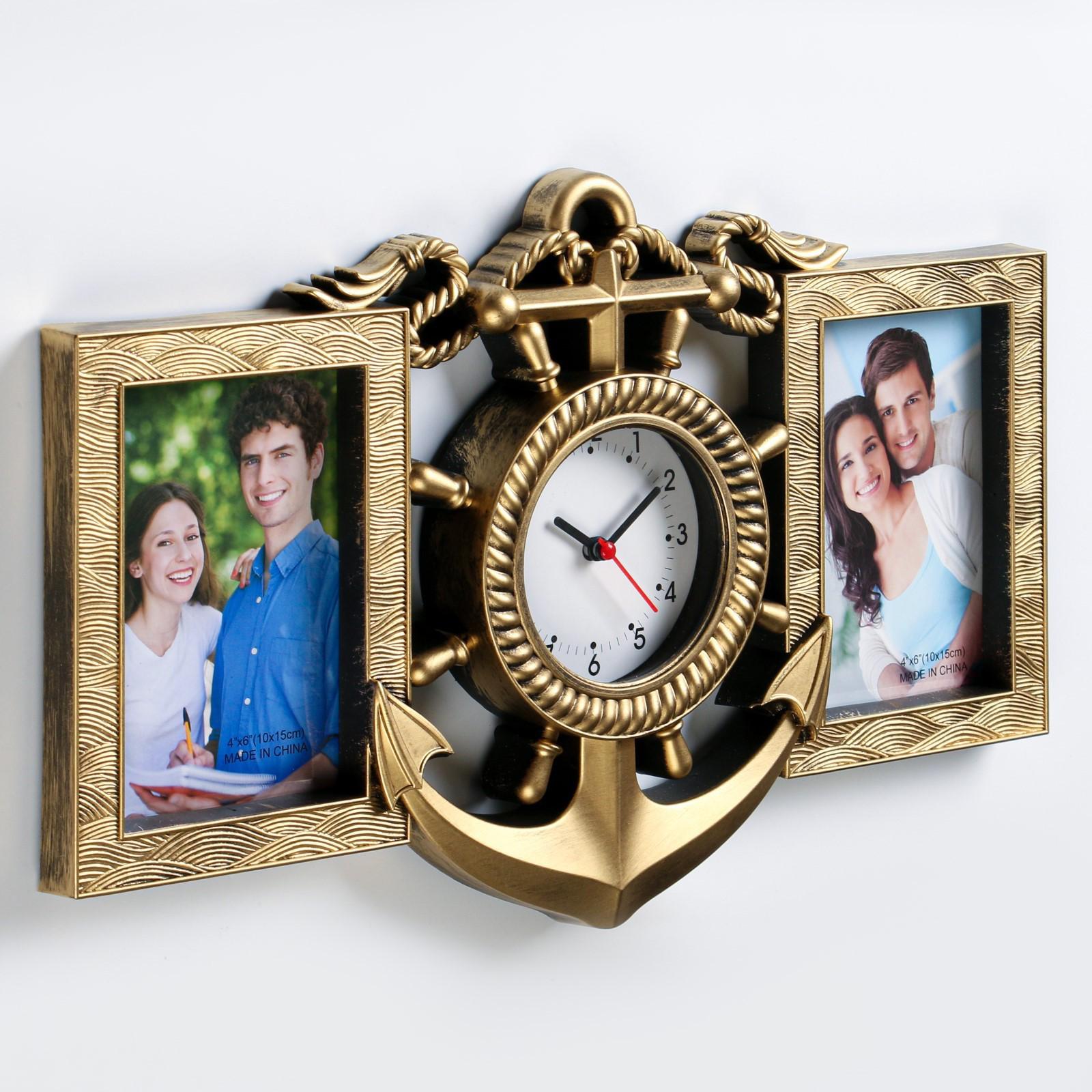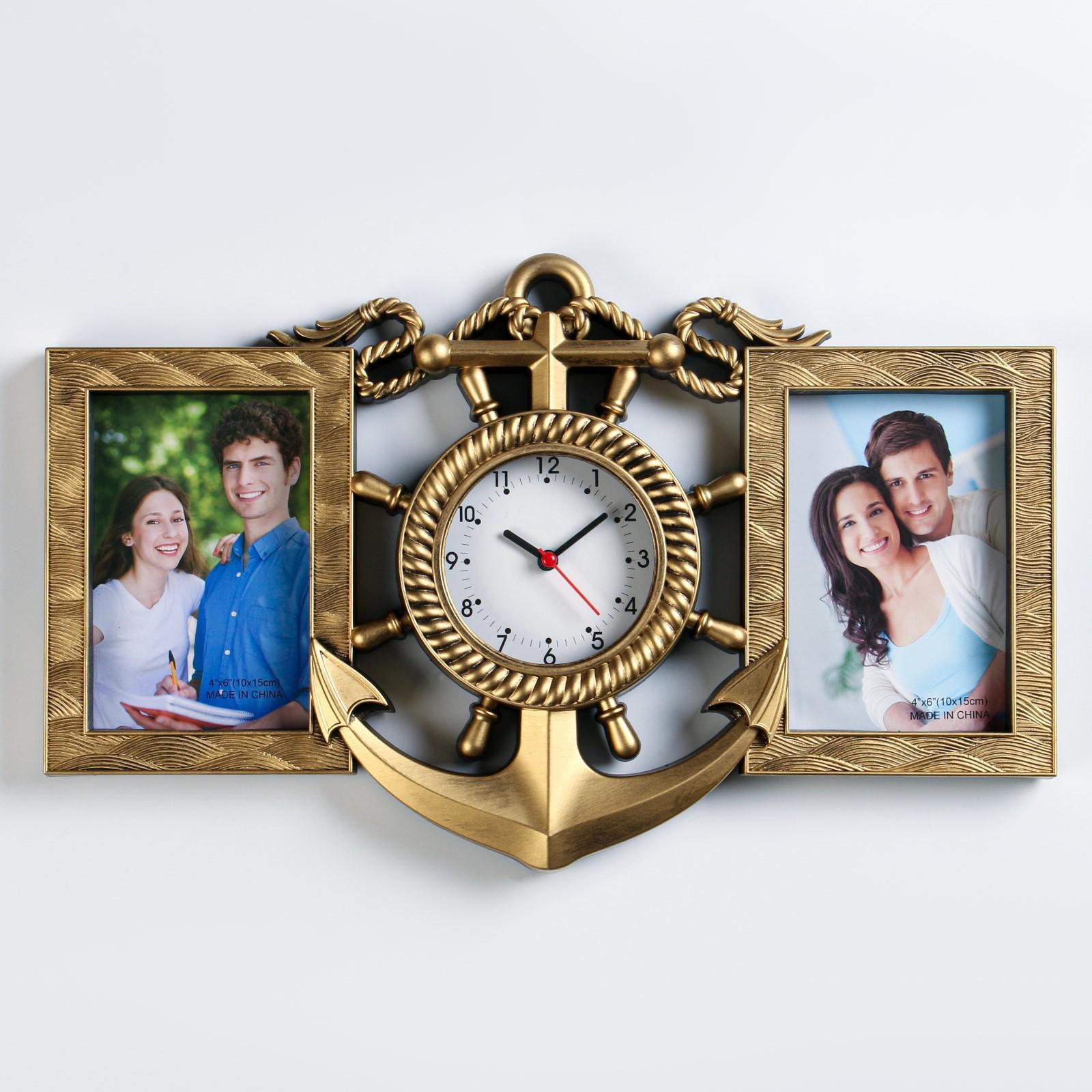 Часы настенные, серия: Фоторамки, "Якорь", плавный ход, 42 х 27 х 3 см, циферблат 12 см