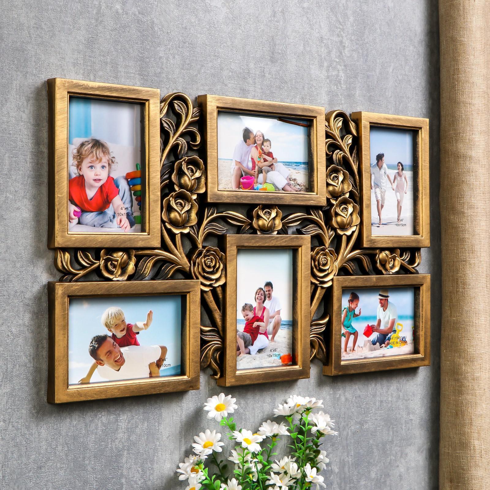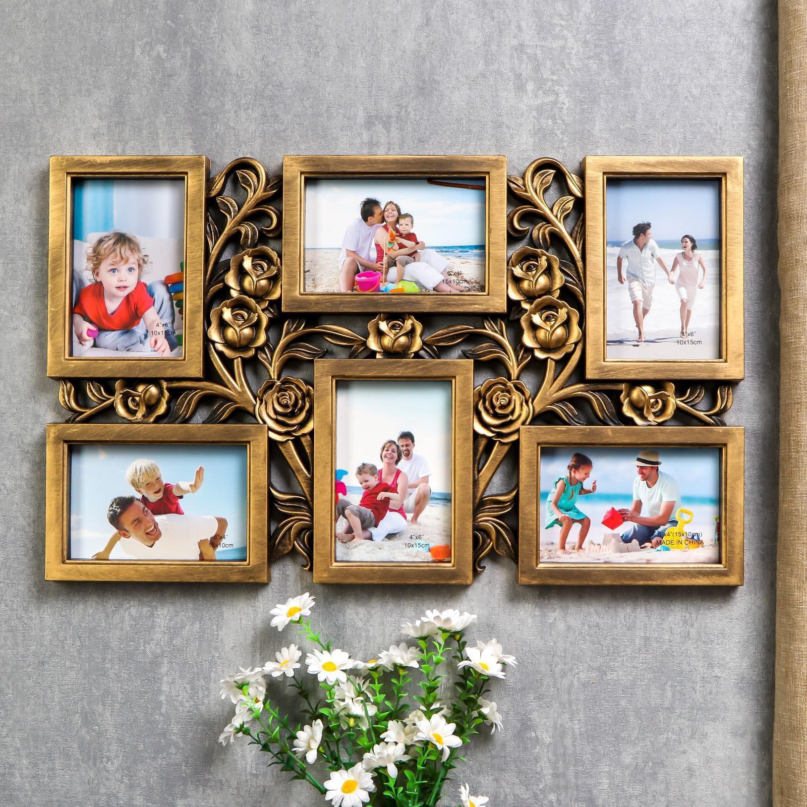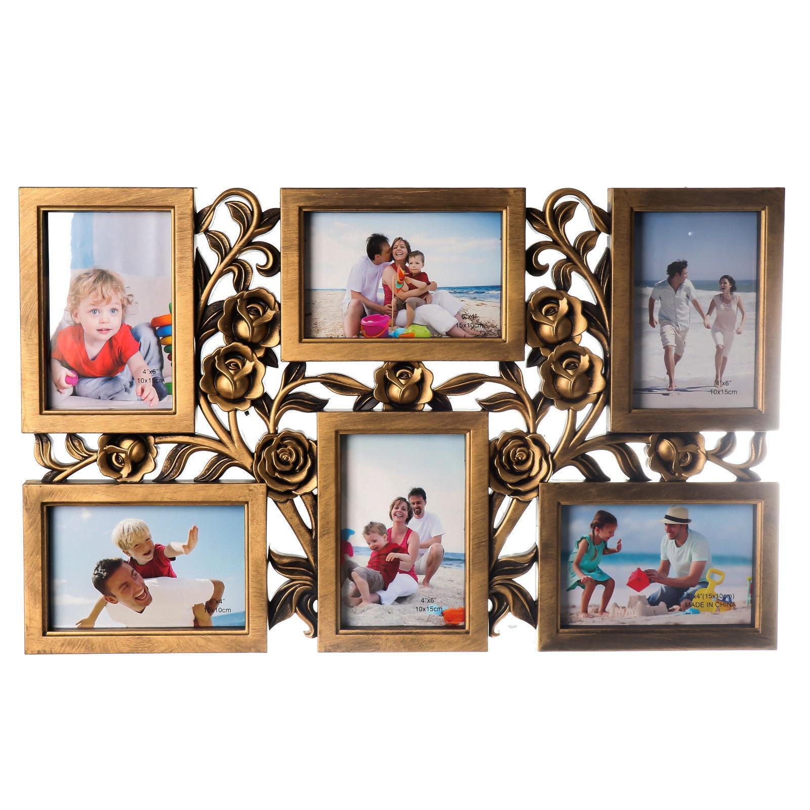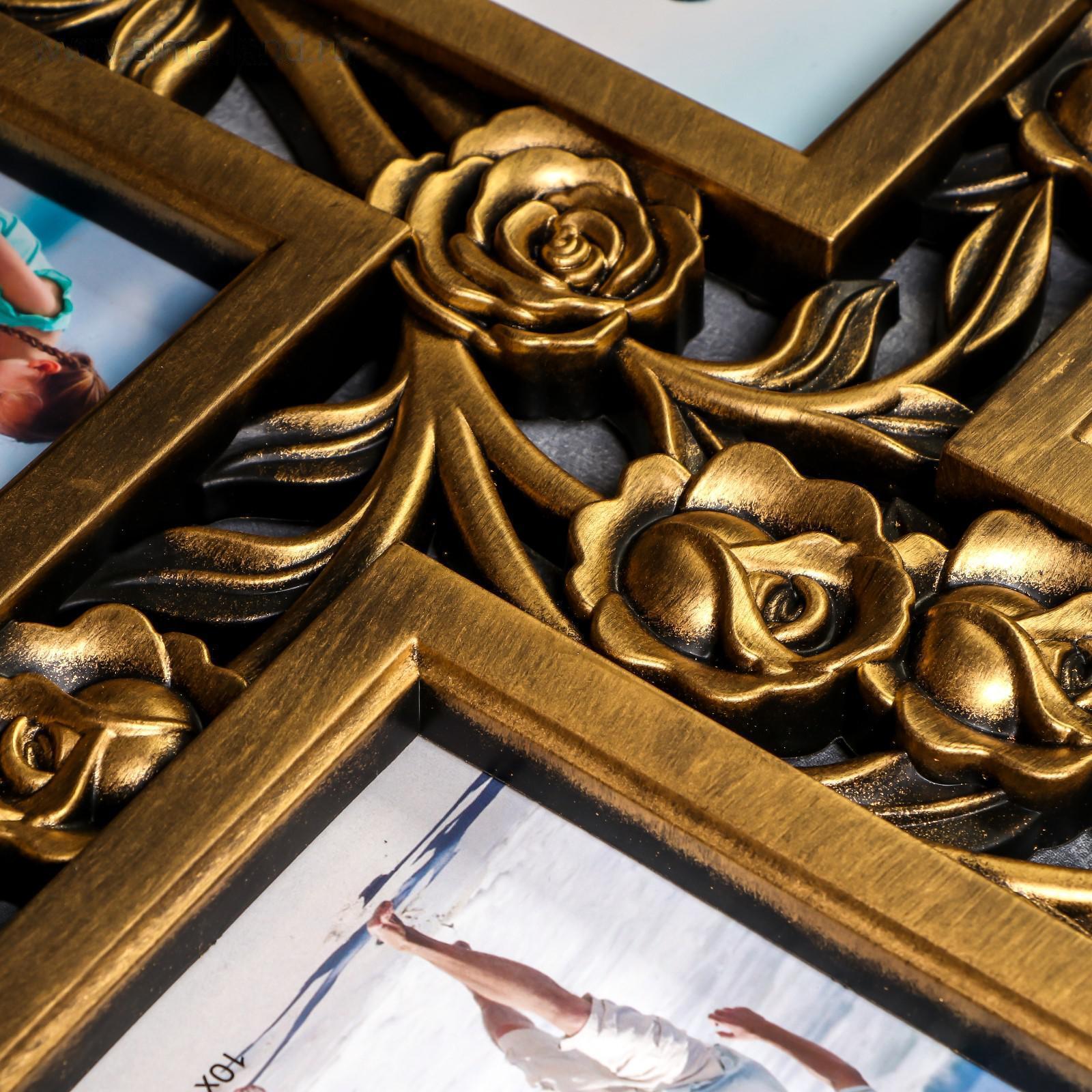 Фоторамка пластик на 6 фото 10х15 см "Куст роз" тёмное золото 35,5х56,5х2 см