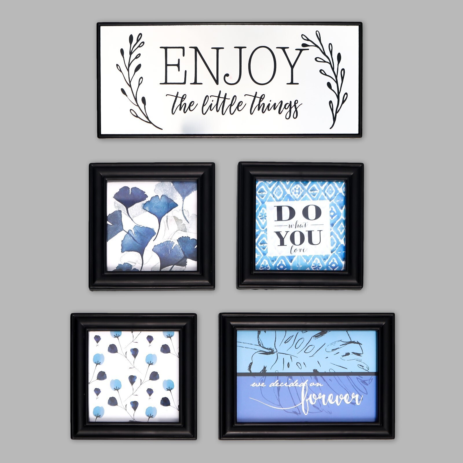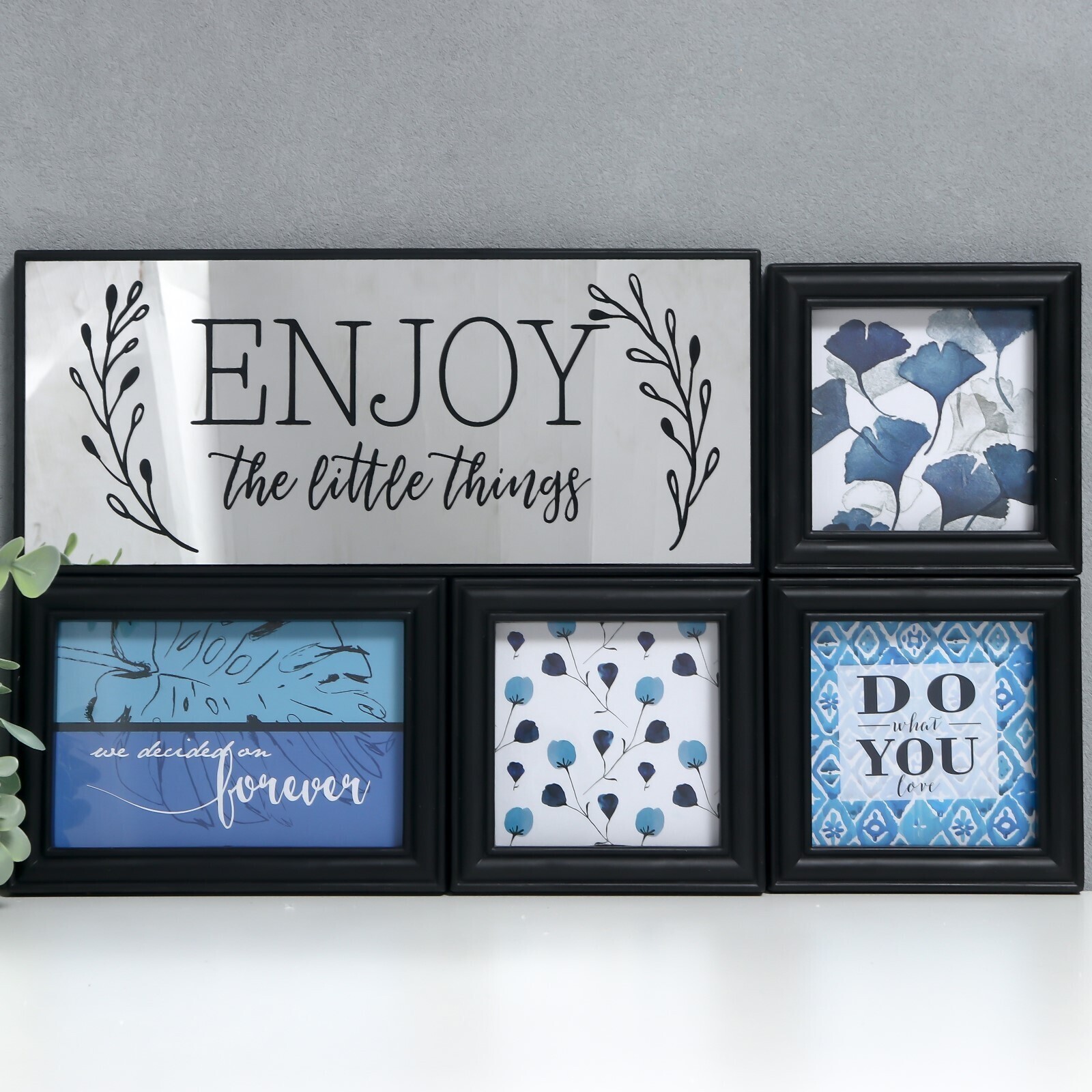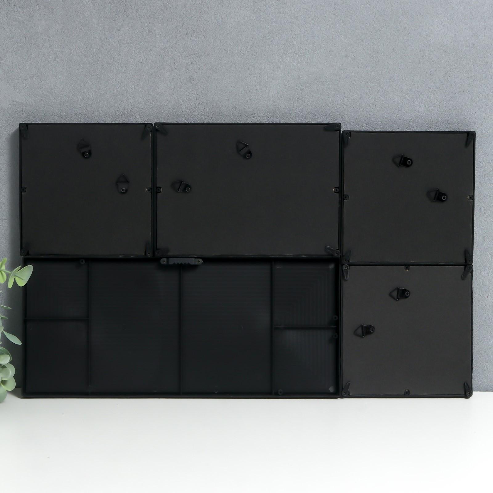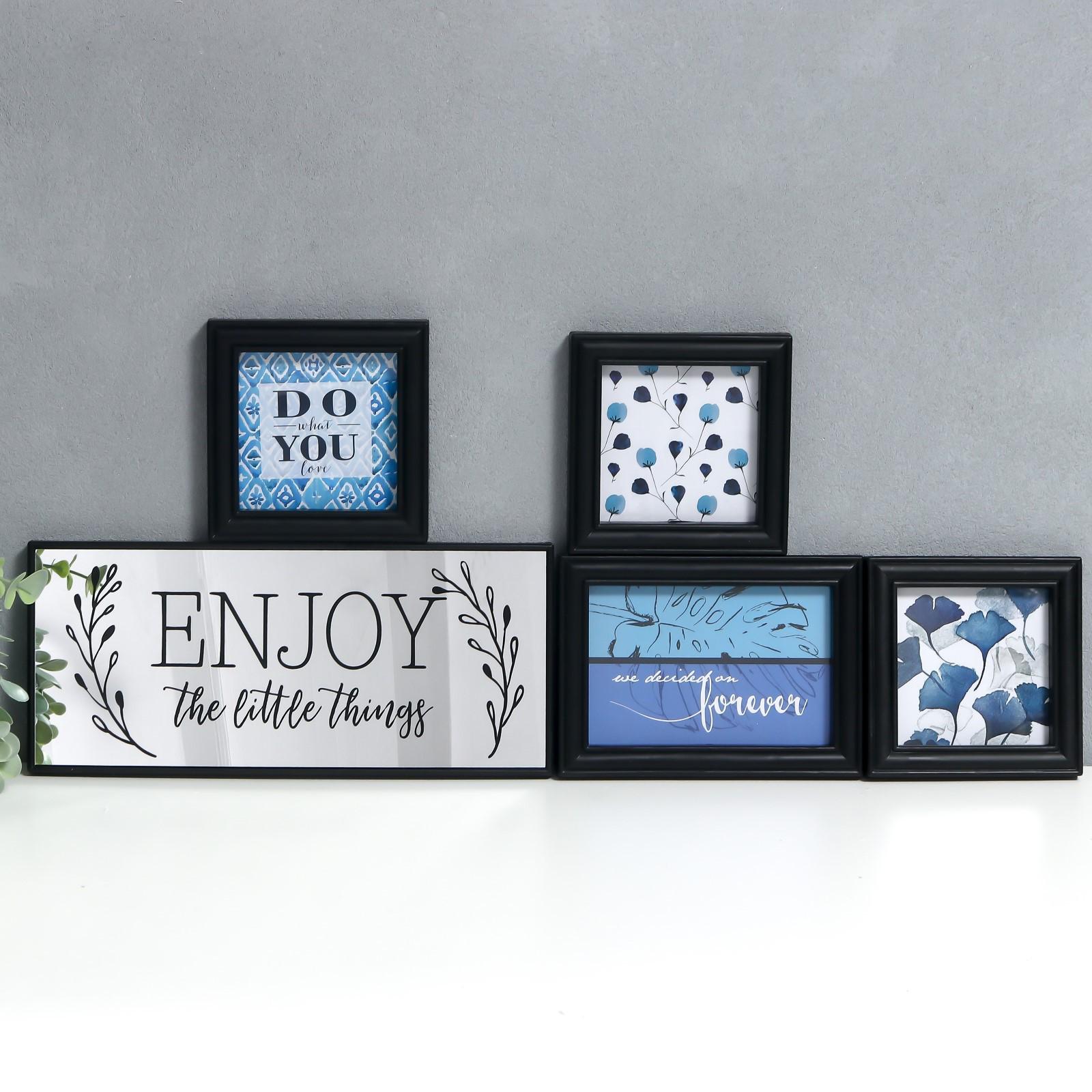 Фоторамка на 4 фото 10х10, 10х15 см+зеркало "Наслаждайся мелочами" чёрная н-р 5 шт 26х44 см 786208