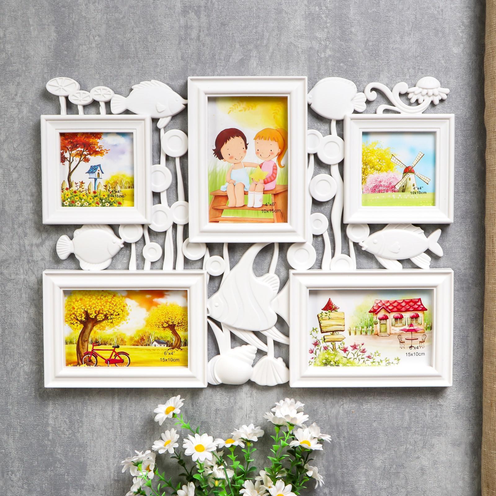 Фоторамка на 5 фото 10х10, 10х15 см "Рыбки" белая 34,5х45х2,5 см