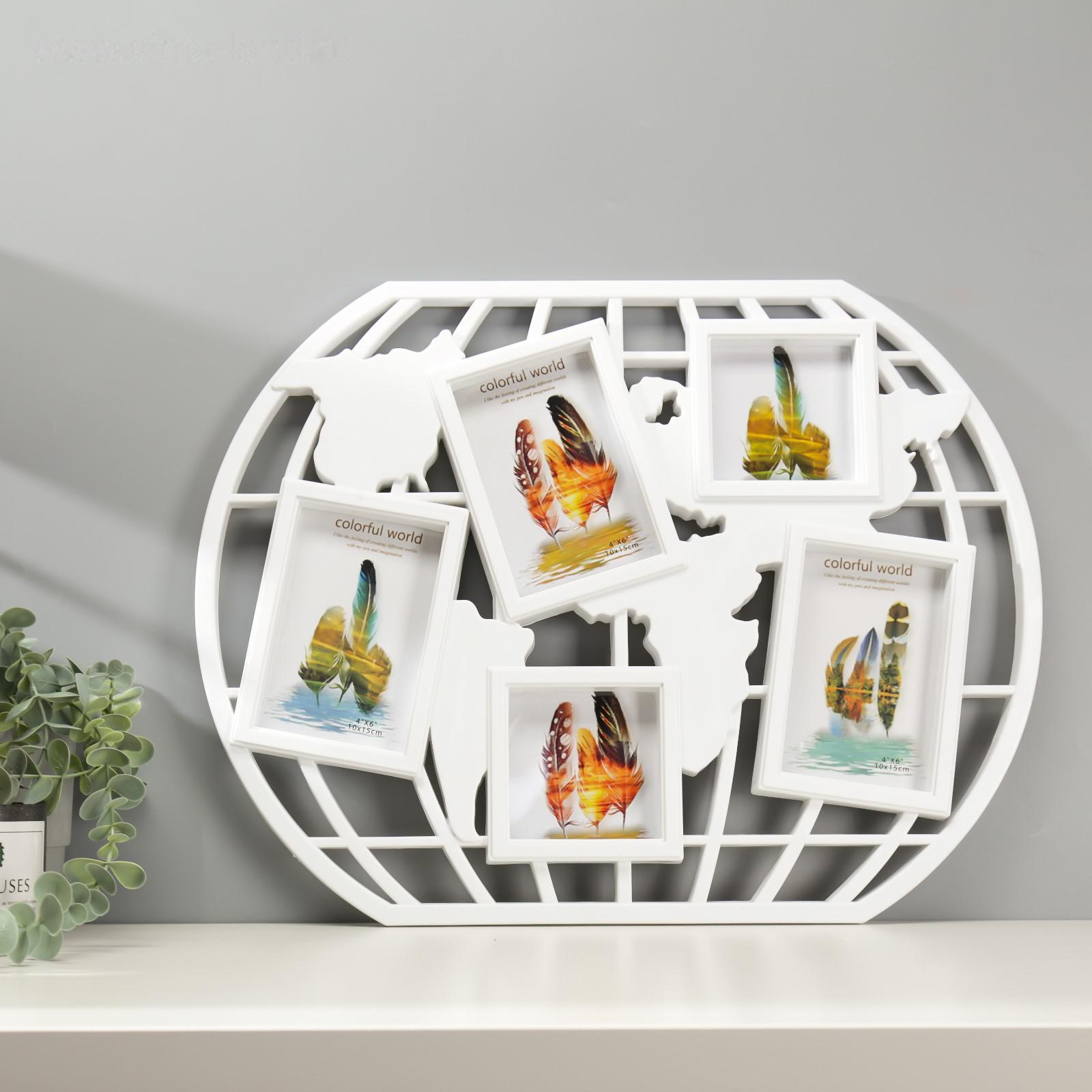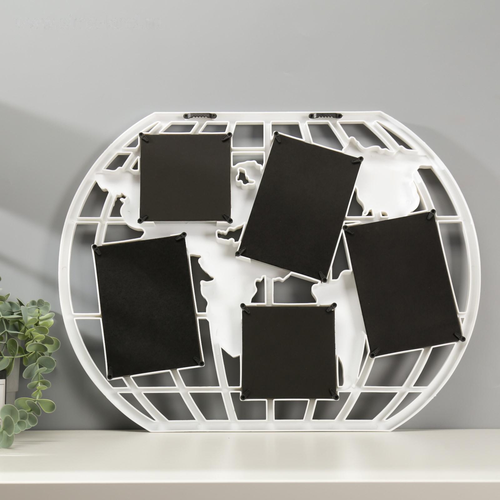 Фоторамка пластик на 5 фото 10х10, 10х15 см "Карта" белая 44х55 см