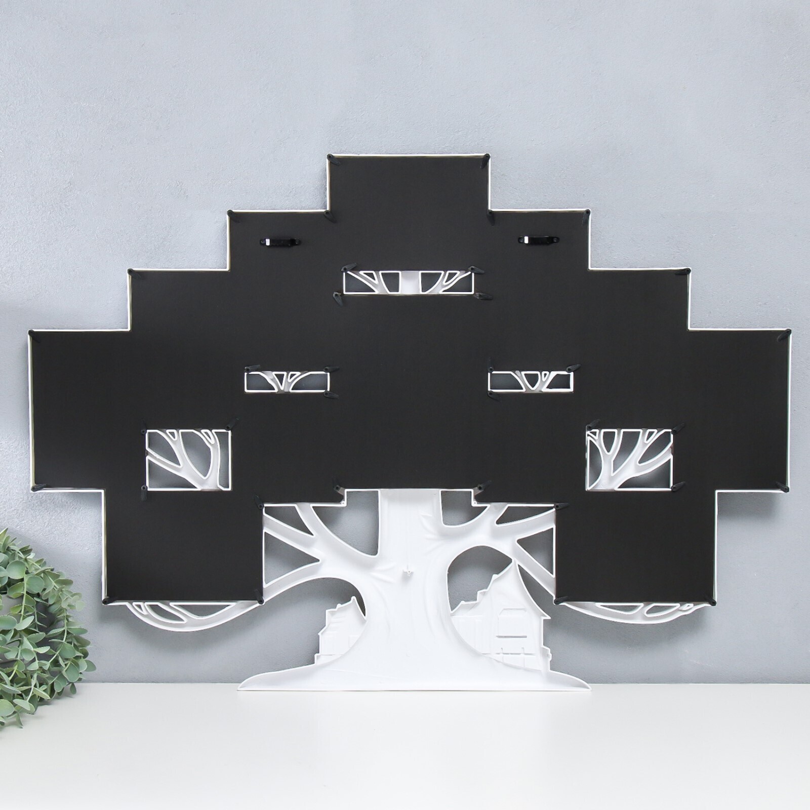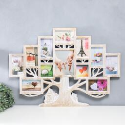 Фоторамка пластик на 12 фото 10х10, 10х15, 15х20 см "Семейное дерево"бел с золотом 58х82см