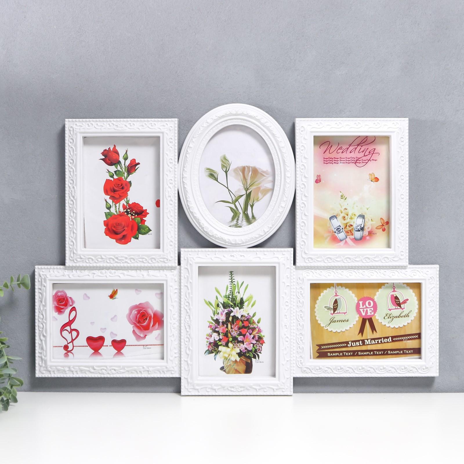 Фоторамка на 6 фото 13х18 см "С узорами" белая 37,5х59 см