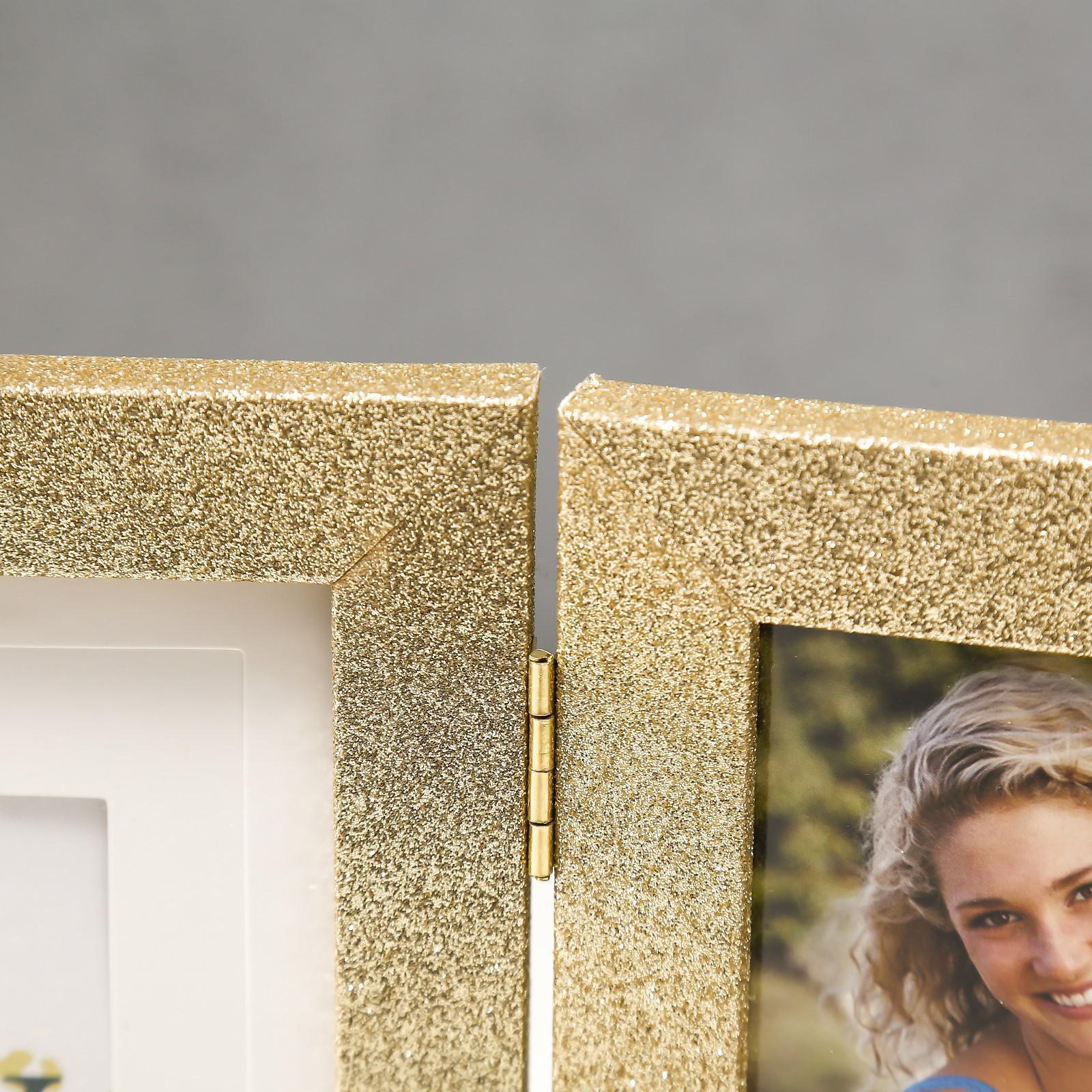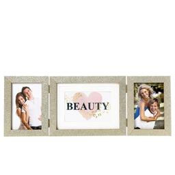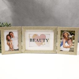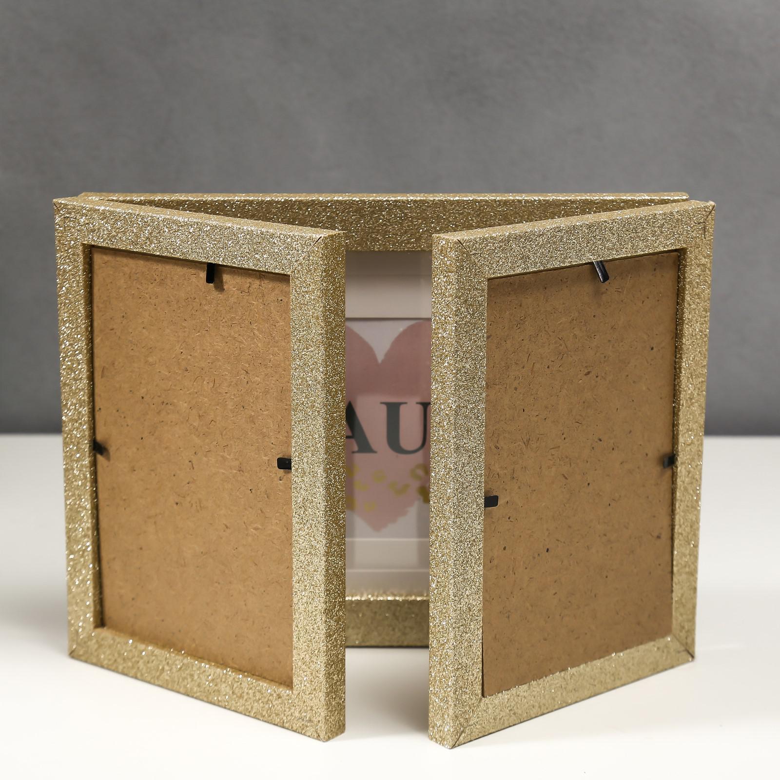 Фоторамка пластик на 3 фото 10х15, 15х20 см "Блёстки" золото 18х50 см