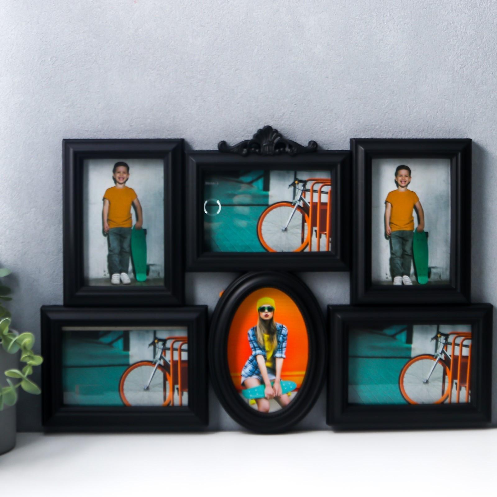 Фоторамка пластик на 6 фото 10х15 см "Вензель" чёрная 31,5х50 см