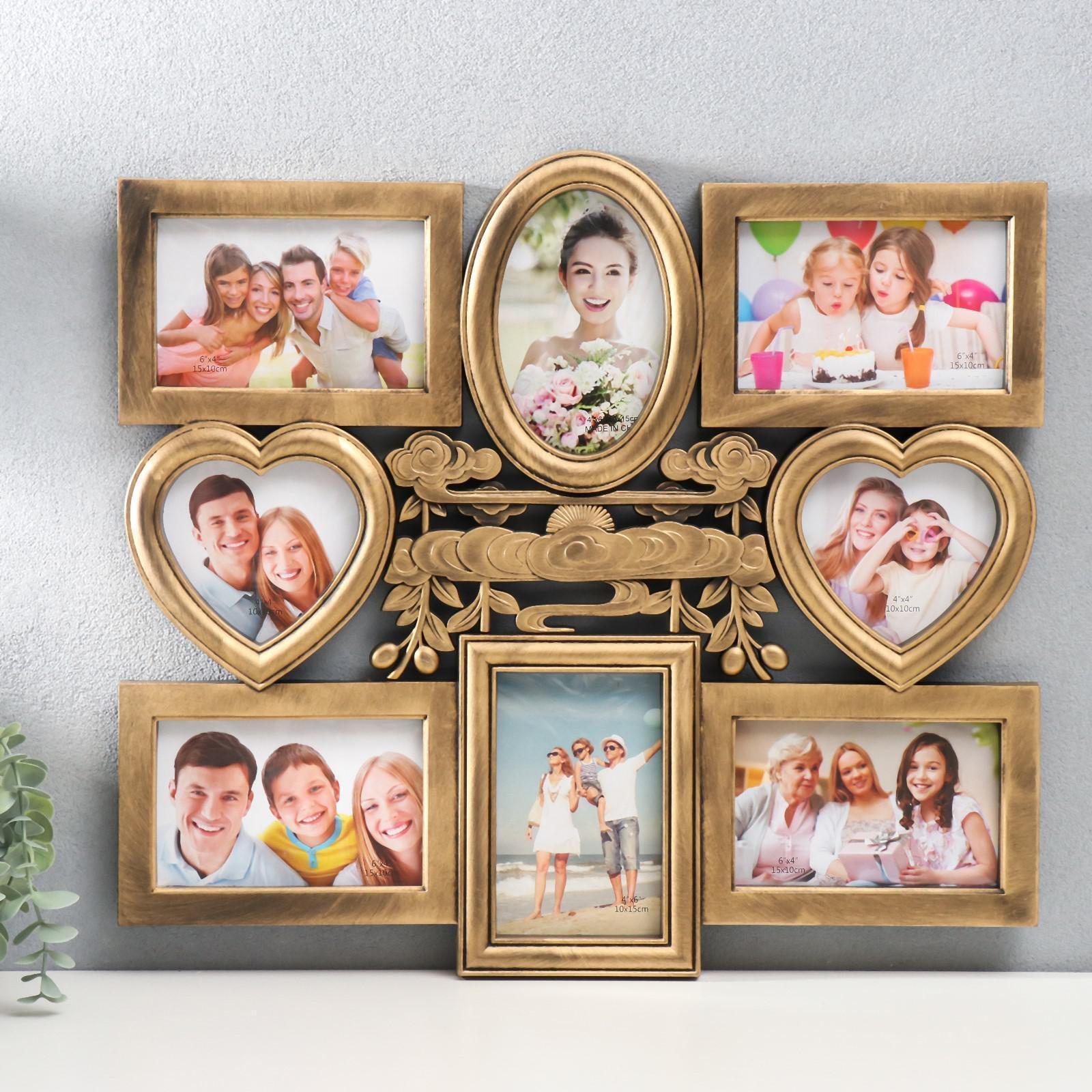 Фоторамка пластик на 8 фото 10х10, 10х15 см "Восход солнца" тёмное золото 44,5х49,5 см