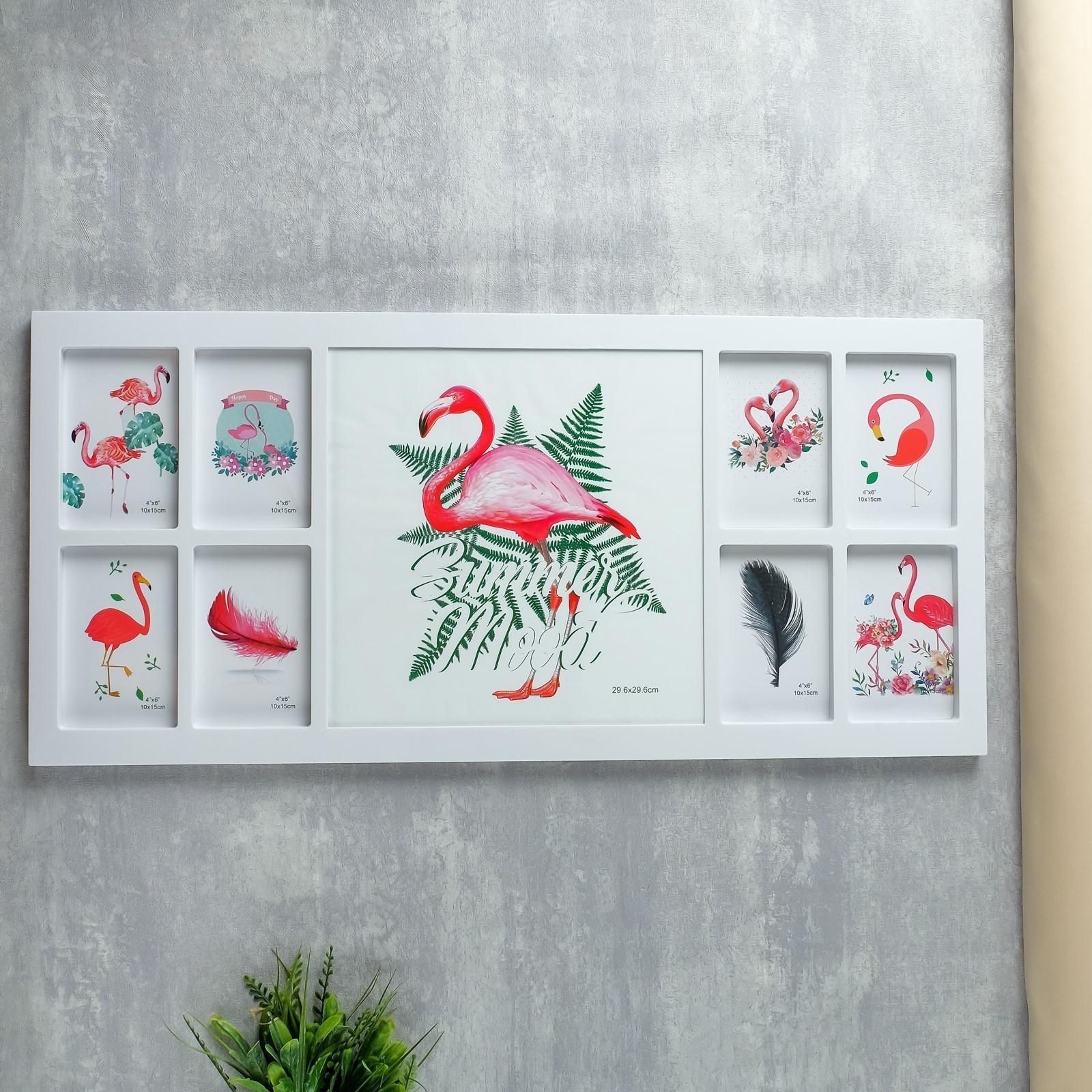 Фоторамка пластик на 9 фото 10х15, 29,6х29,6 см "Стильно" белая 35х74 см