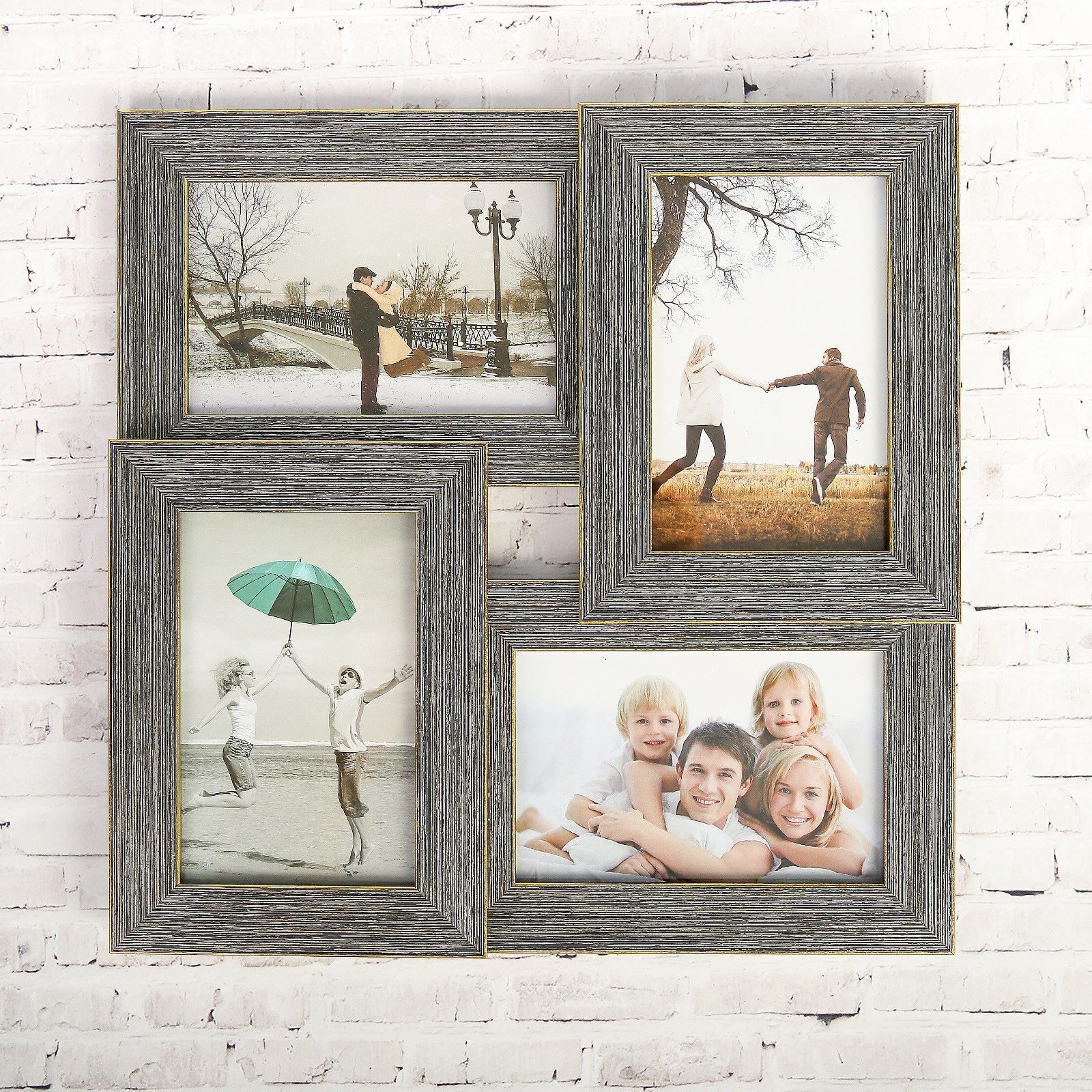 Фоторамка пластик на 4 фото 10х15 см "Серый грифель" 32х31,8 см