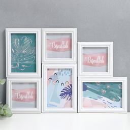 Фоторамка на 6 фото 10х10, 10х15 см "Классика" белая набор 6 шт 31,5х40 см