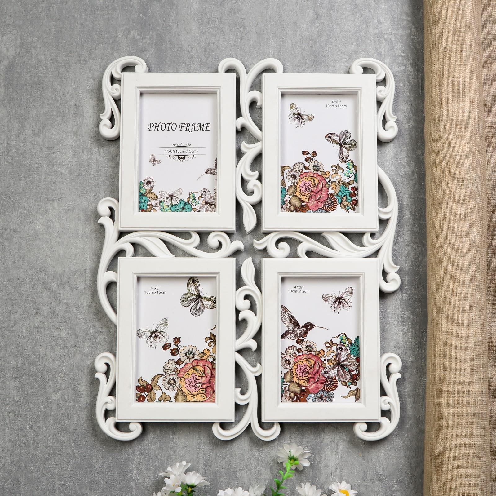 Фоторамка на 4 фото 10х15 см "Ветвь ажурная" белая 44х34 см