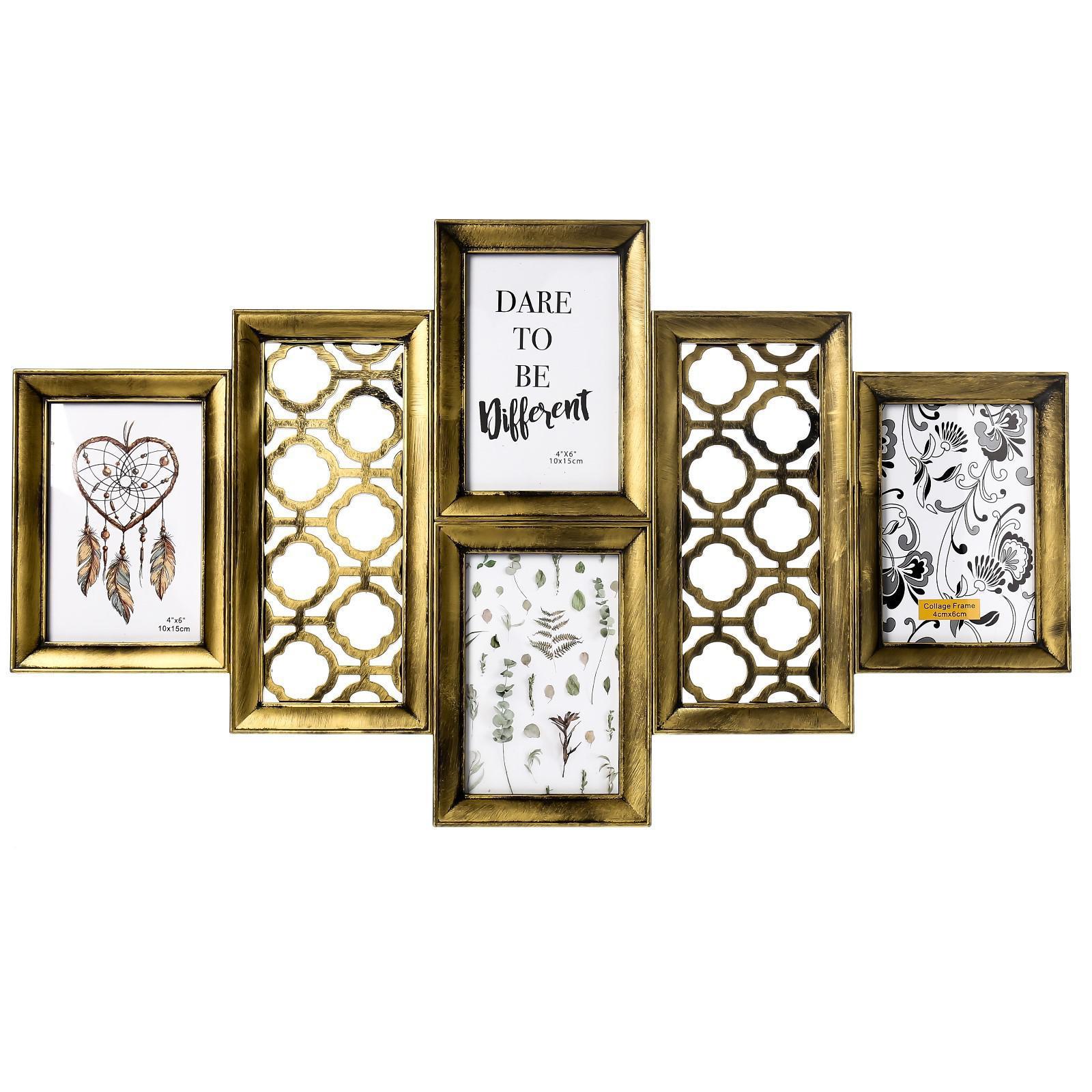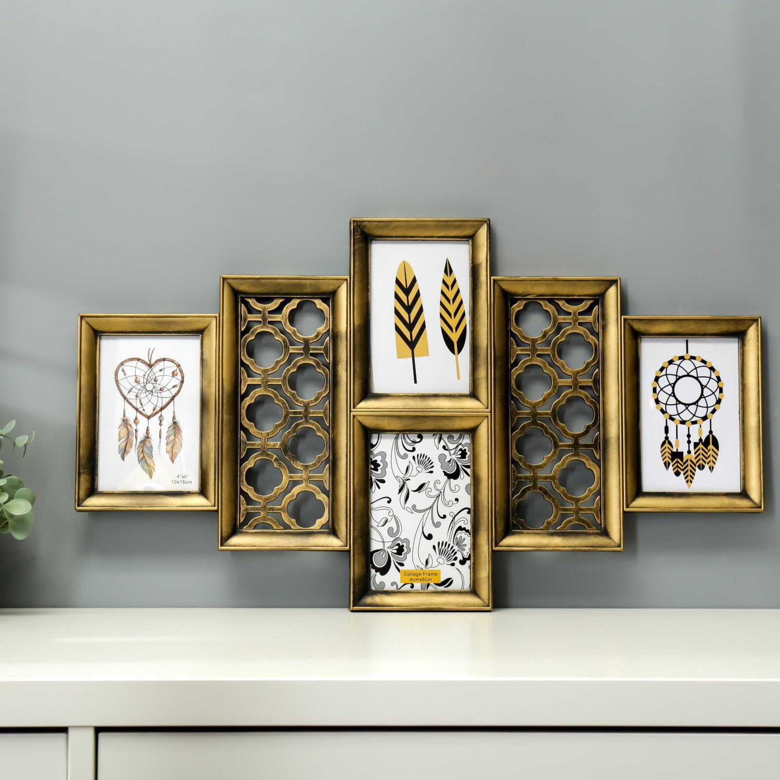 Фоторамка пластик на 4 фото 10х15 см "Узор" золото 35х61х2 см