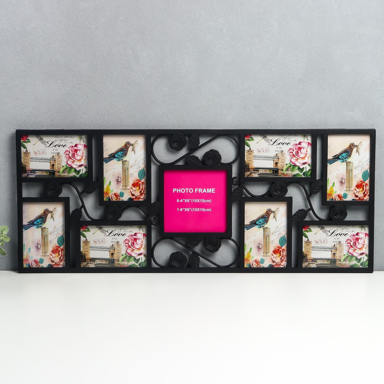 Фоторамка на 9 фото 10х15 см 15х15см "Розы" чёрная 76х30 см