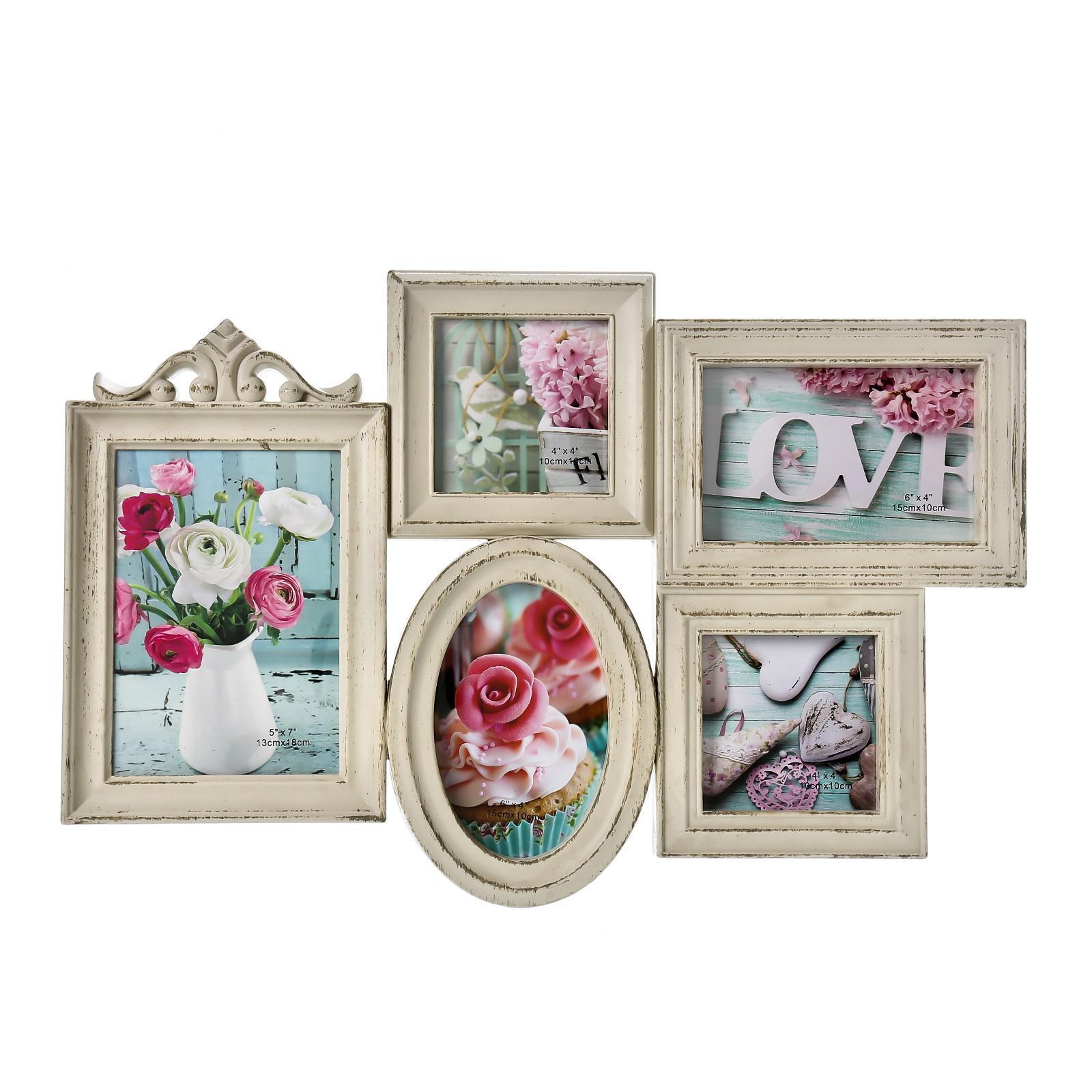 Фоторамка пластик на 5 фото 10х15,13х18,10х10 см "Классика" бежевая 32х48,5 см